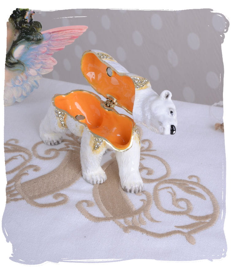 Шкатулка для белого медведя из белого металла, Фаберже