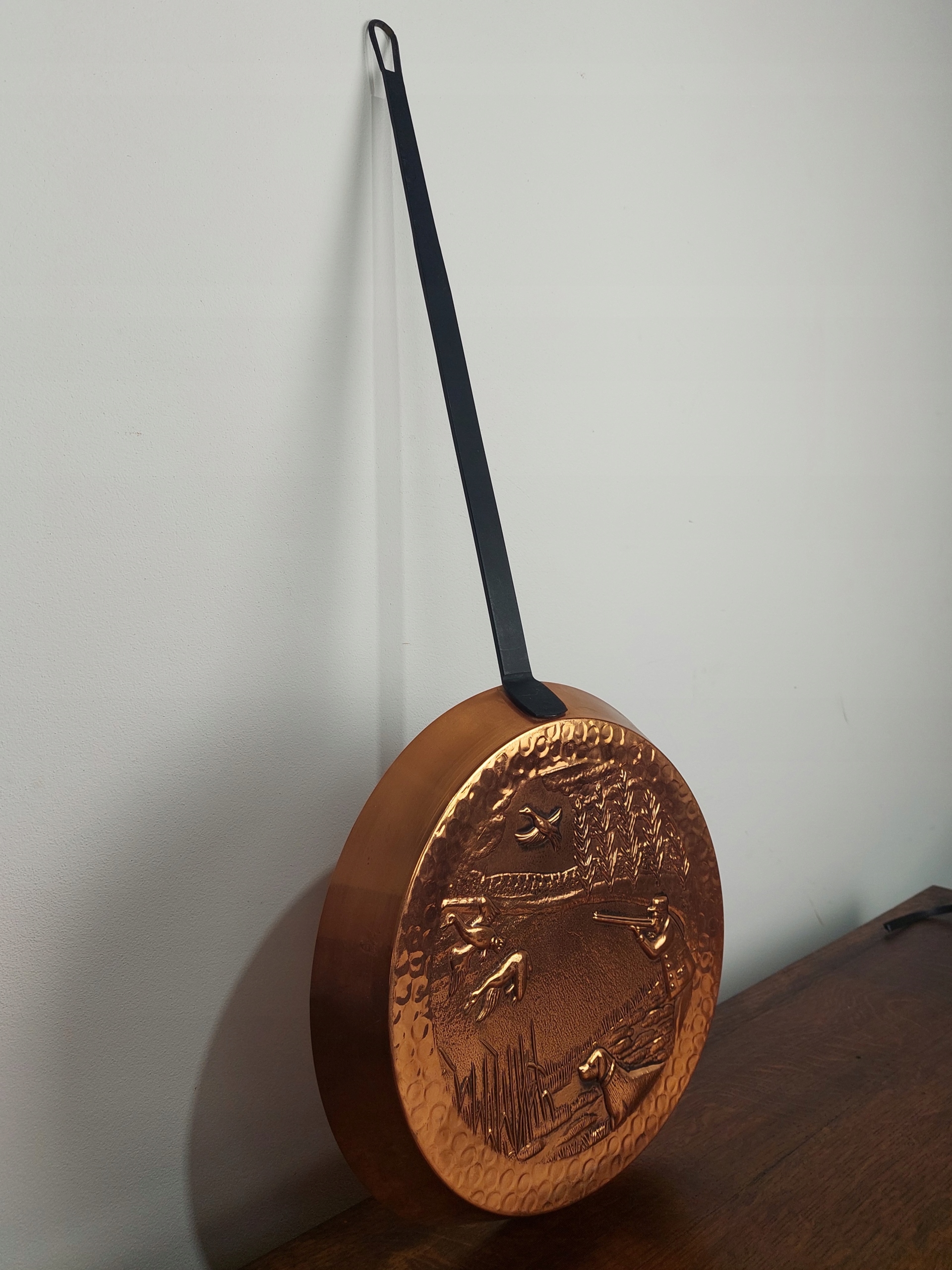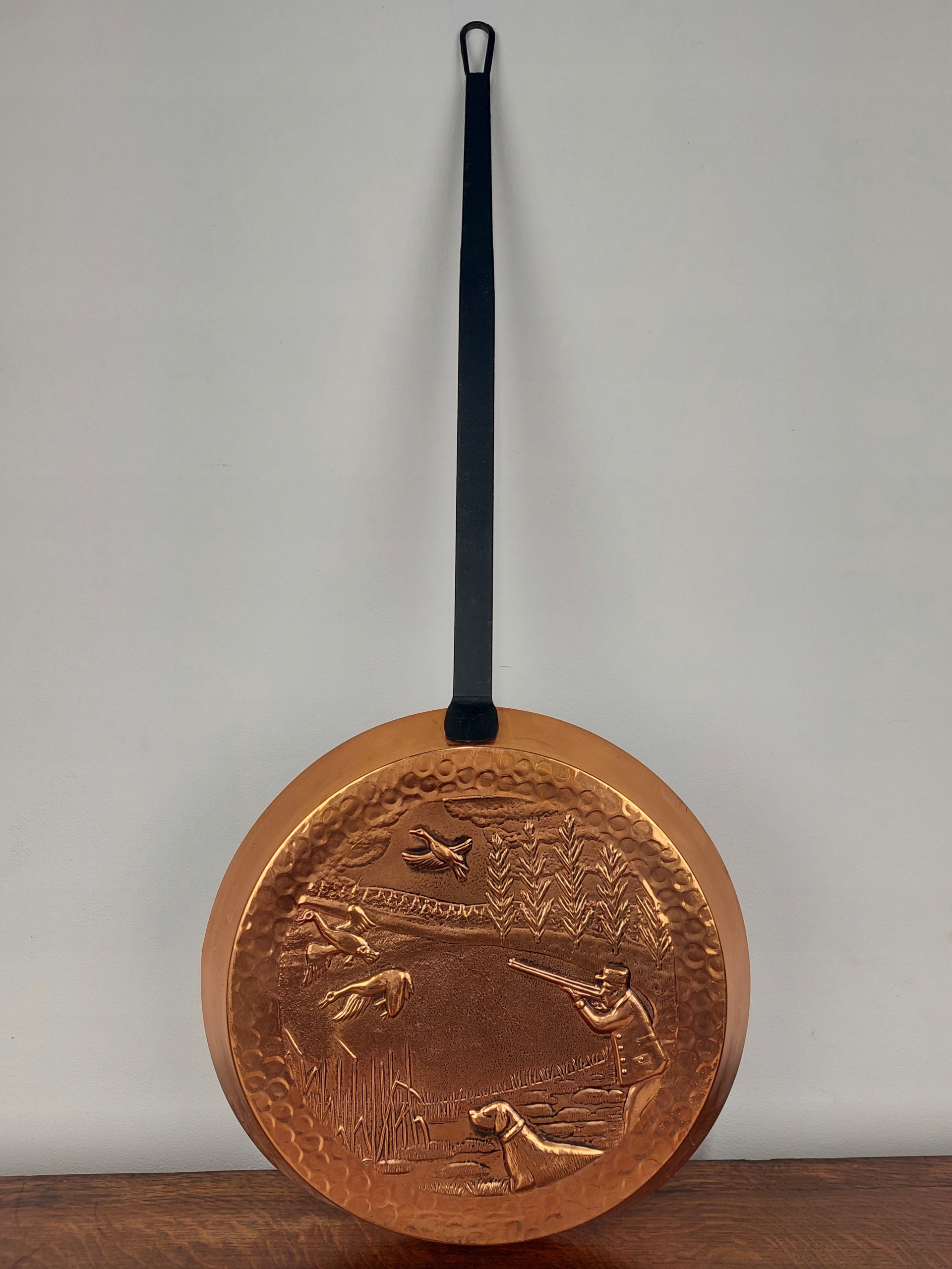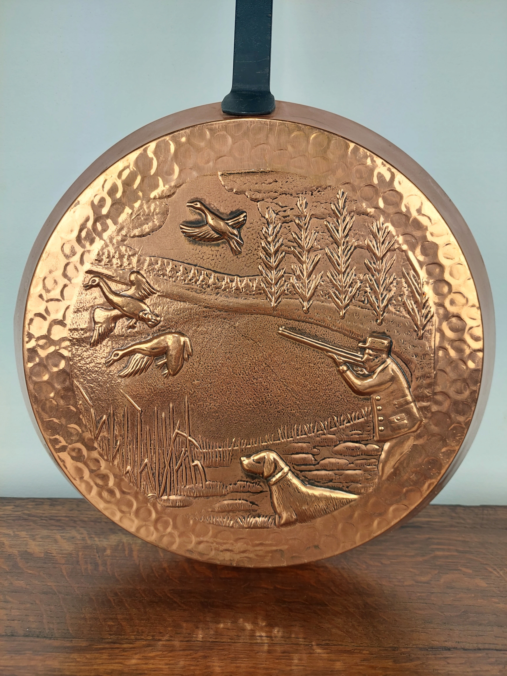 Стильная декоративная сковорода из меди и чугуна. Место производства Бельгия. На медной части - увековеченная сцена от Duck Hunt. Условие с учетом возраста довольно хорошего отсутствия основных функций или вмятин, полноценного продукта. Подробная информация, показанные на изображениях ниже