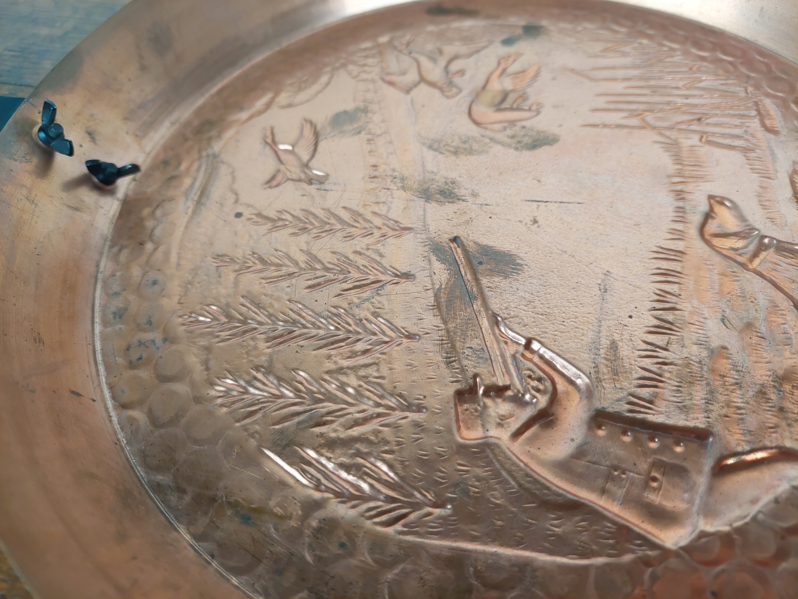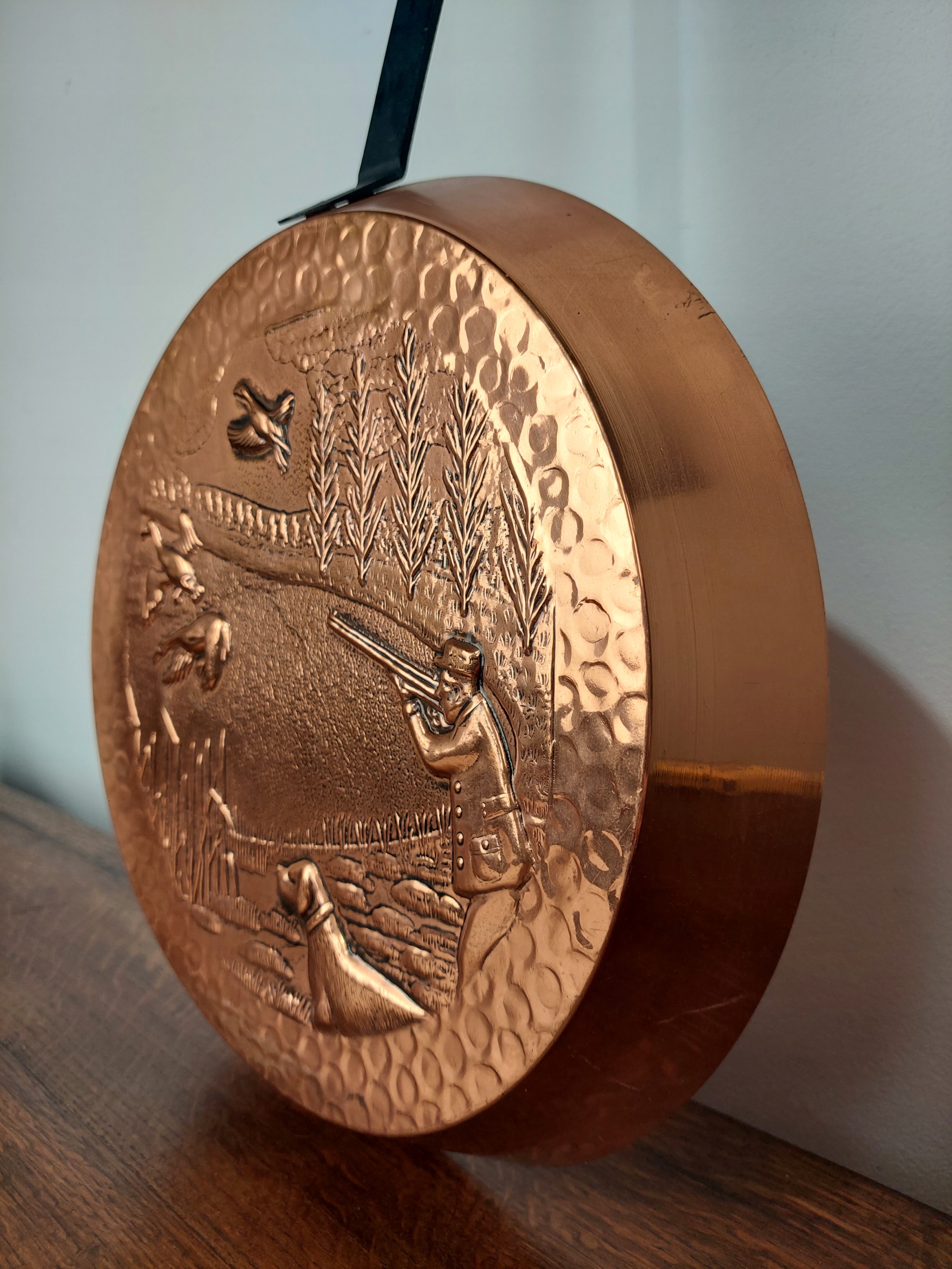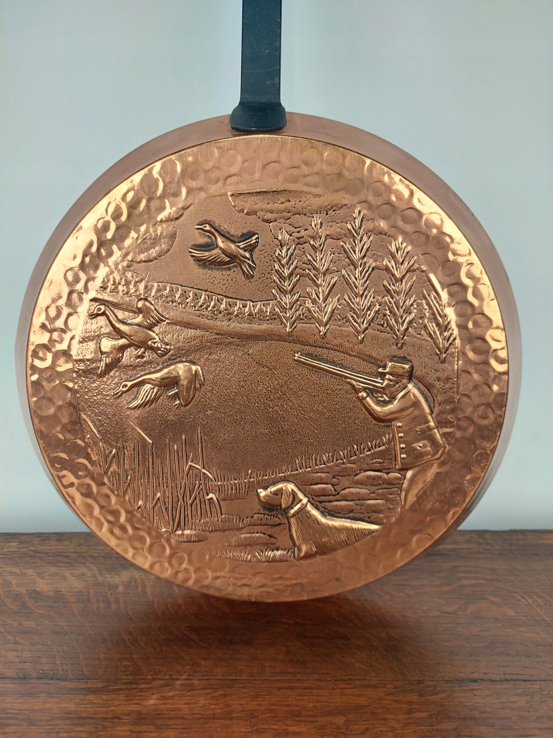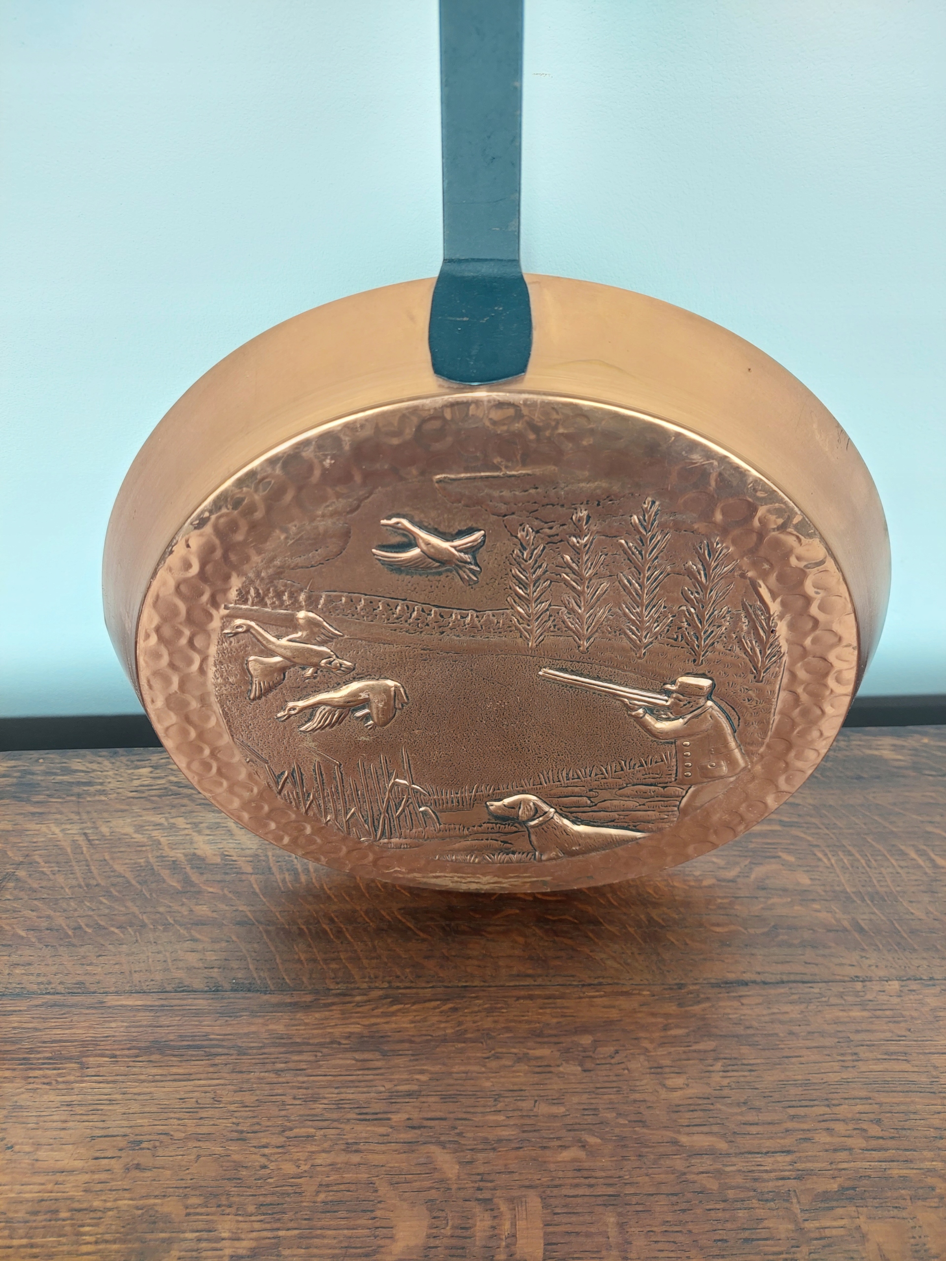 Стильная декоративная сковорода из меди и чугуна. Место производства Бельгия. На медной части - увековеченная сцена от Duck Hunt. Условие с учетом возраста довольно хорошего отсутствия основных функций или вмятин, полноценного продукта. Подробная информация, показанные на изображениях ниже