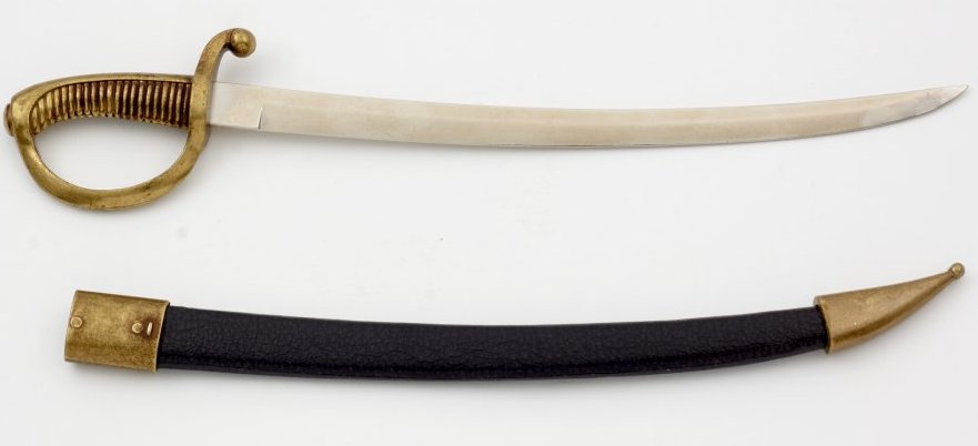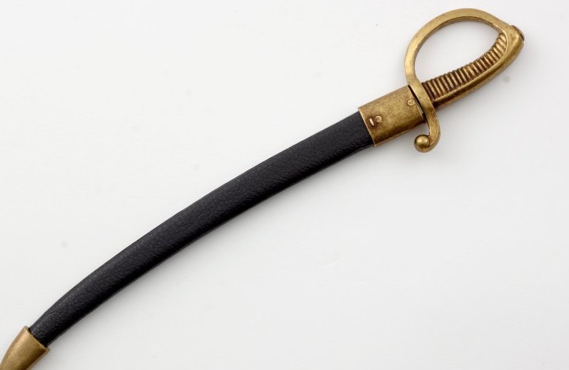 Металлическая сабля со съемными мягкими ножнами. Сабля — это изогнутый однолезвийный меч, который обычно использовался кавалерийскими, пехотными и военно-морскими офицерами в период с 17 по 20 века. Изогнутый характер клинка традиционно отличает его от меча.