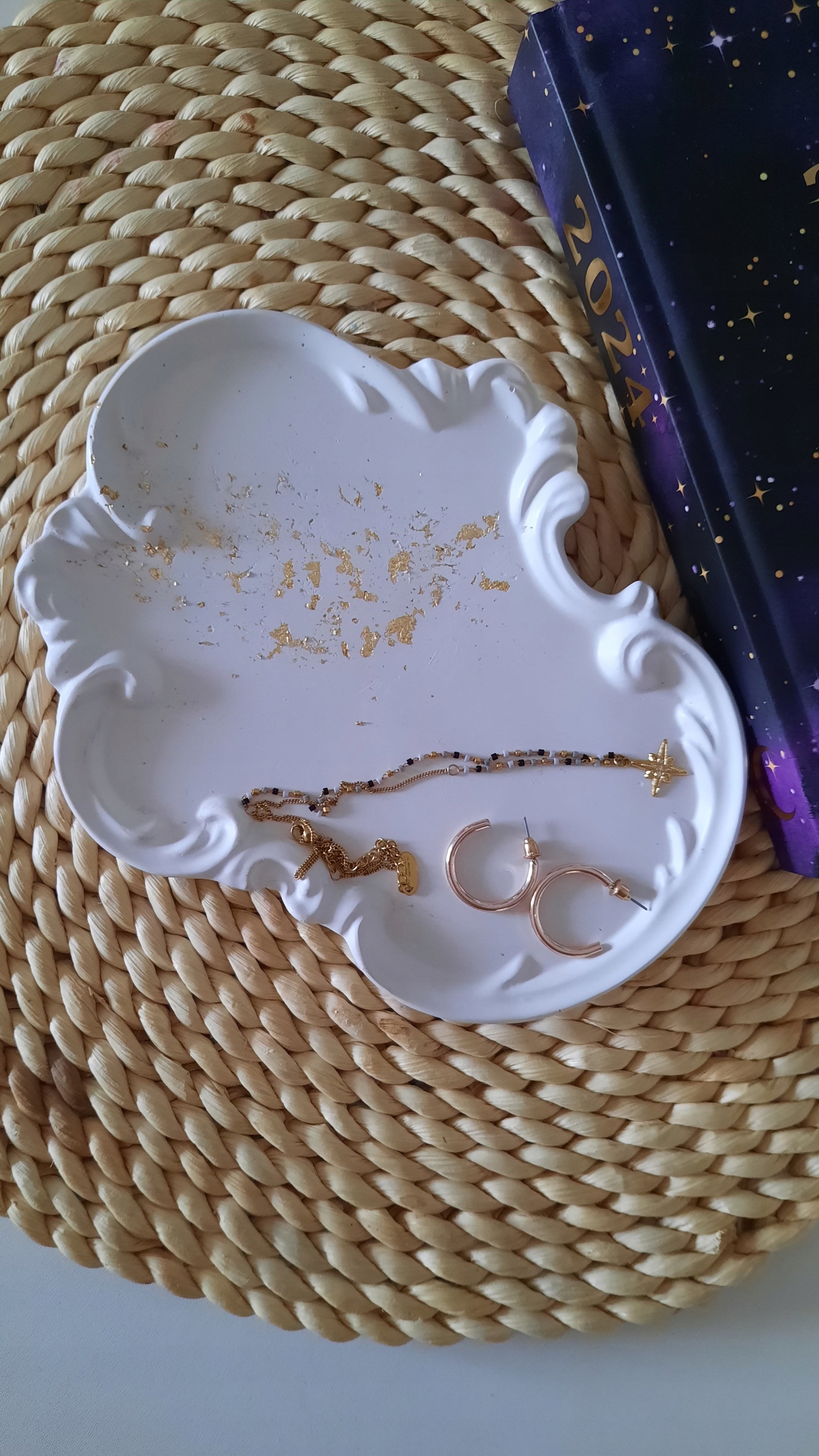 винтажная декоративная стенда белая с золотом под свечами или ювелирными украшениями h1>