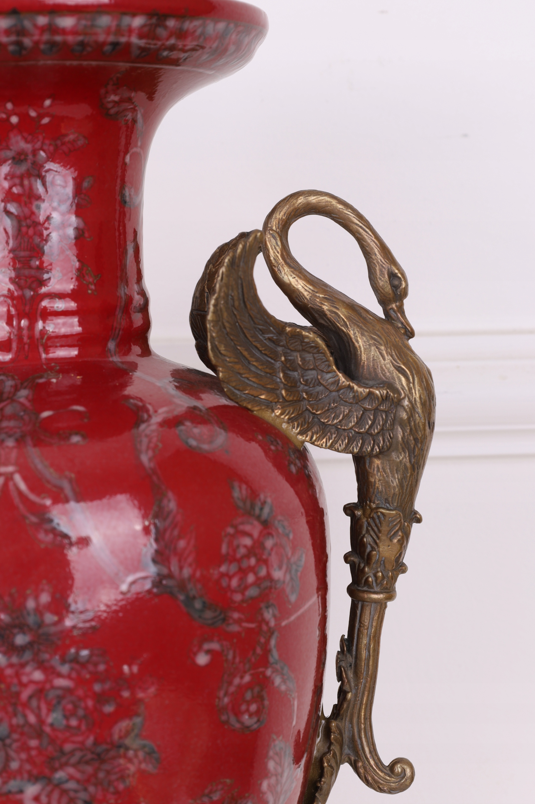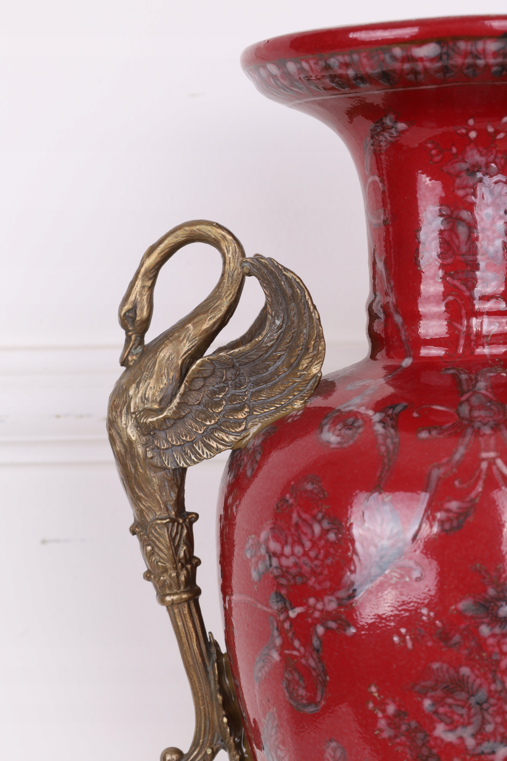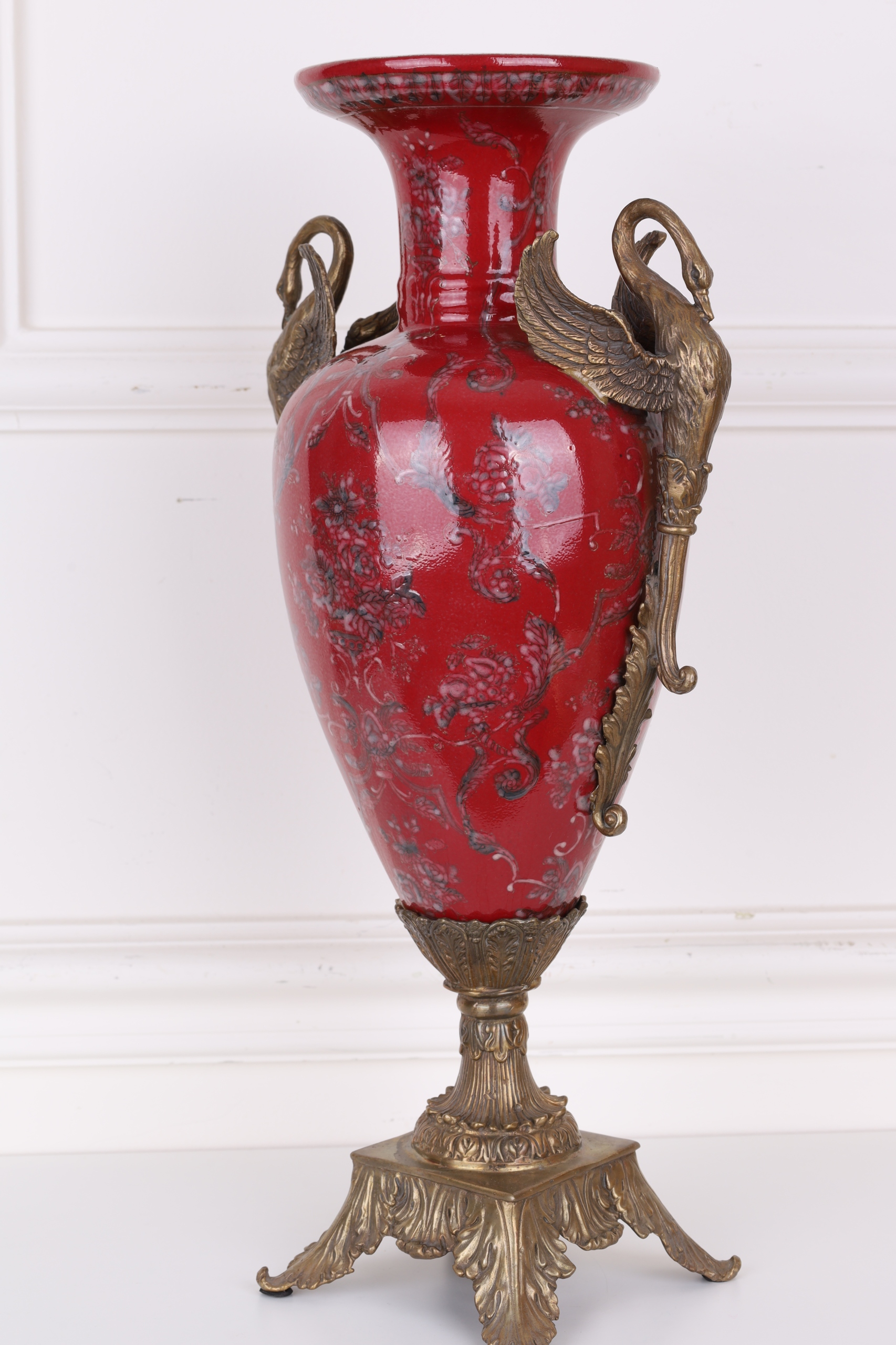 Стильна порцеляна *АМФОРА* з бронзовою ЧЕРВОНОЮ ВАЗОЮ