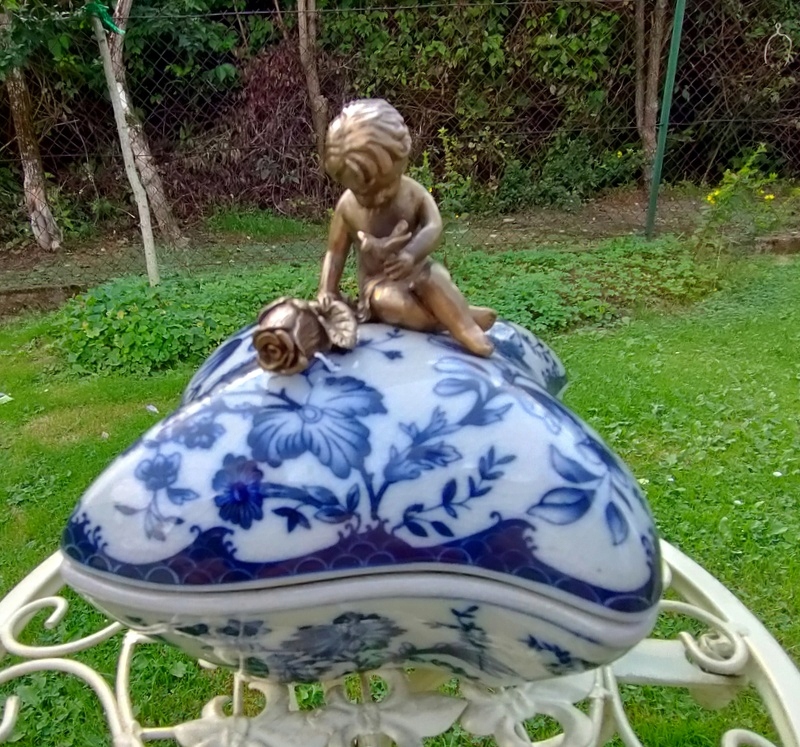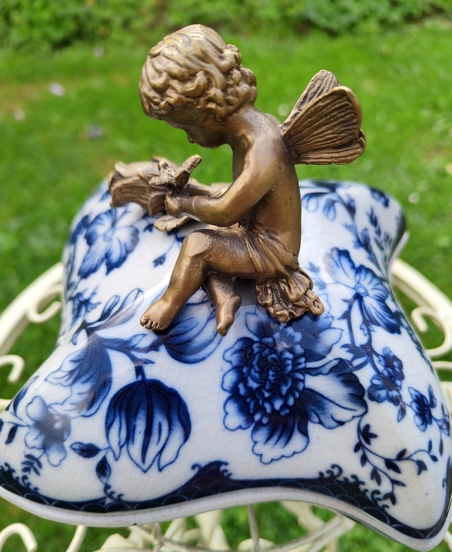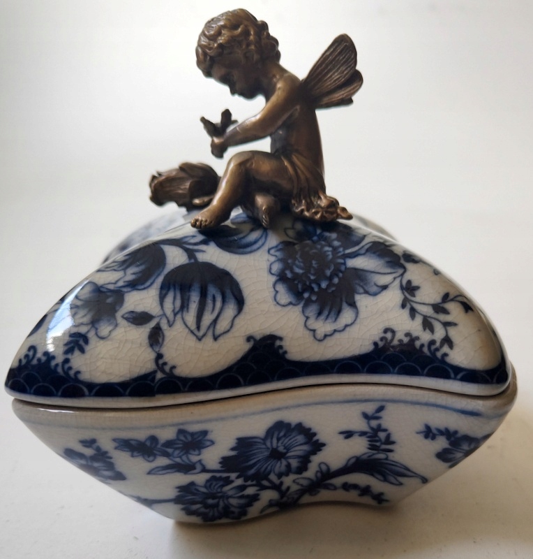 Стильна порцелянова шкатулка з латуні Купідон в стилі модерн