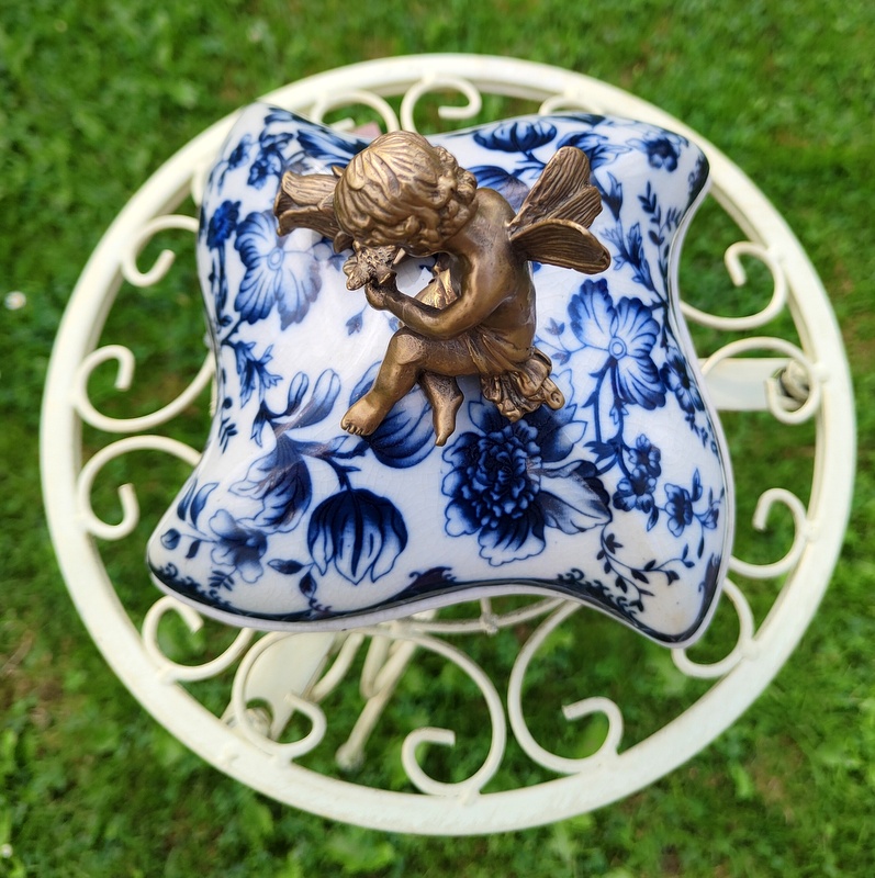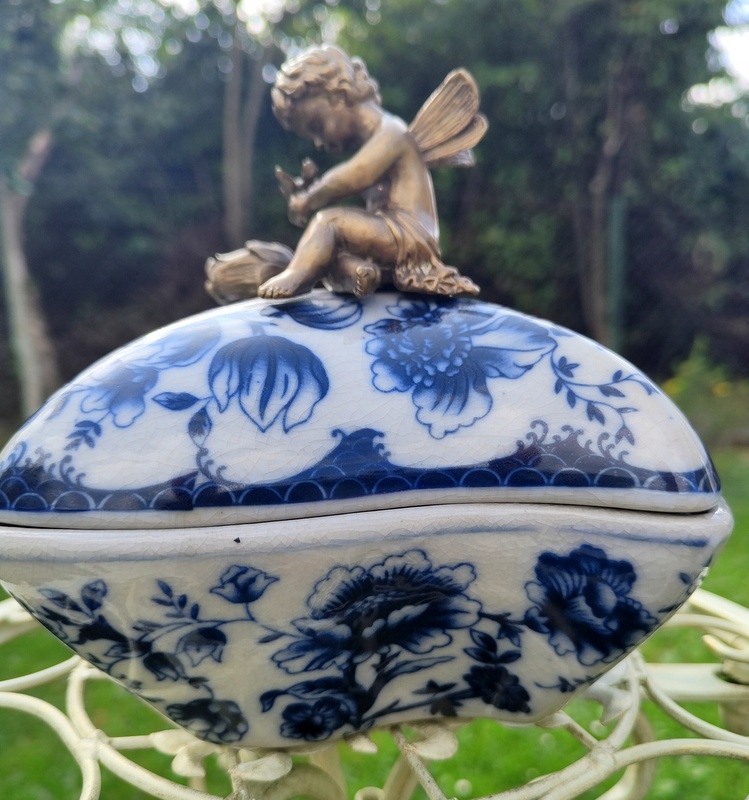 Красивая шкатулка, выполненная в современном, старинном стиле. Новый, неиспользованный. Фарфор со вкусом украшен луковичными узорами в бело-голубых тонах. Дополнительный декоративный элемент – латунь, особенно ручка в форме амура. Блюдо очаровательное и шикарное, оно обязательно станет украшением и полезной вещью в вашем доме.