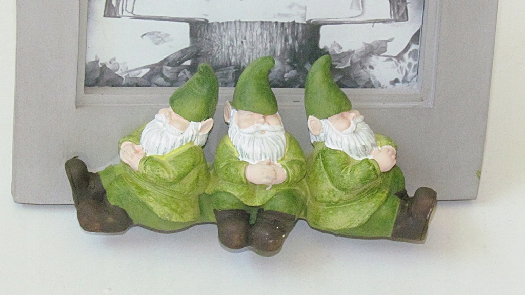 Стильная, привлекательная фоторамка. Выполнен в современном стиле, украшен чудесными гномами. Благодаря чудесной форме размещенная в ней фотография выглядит элегантно, и вся эта вещь непременно станет украшением вашего дома или отличным подарком на случай. Рамка оснащена опорой сзади.
