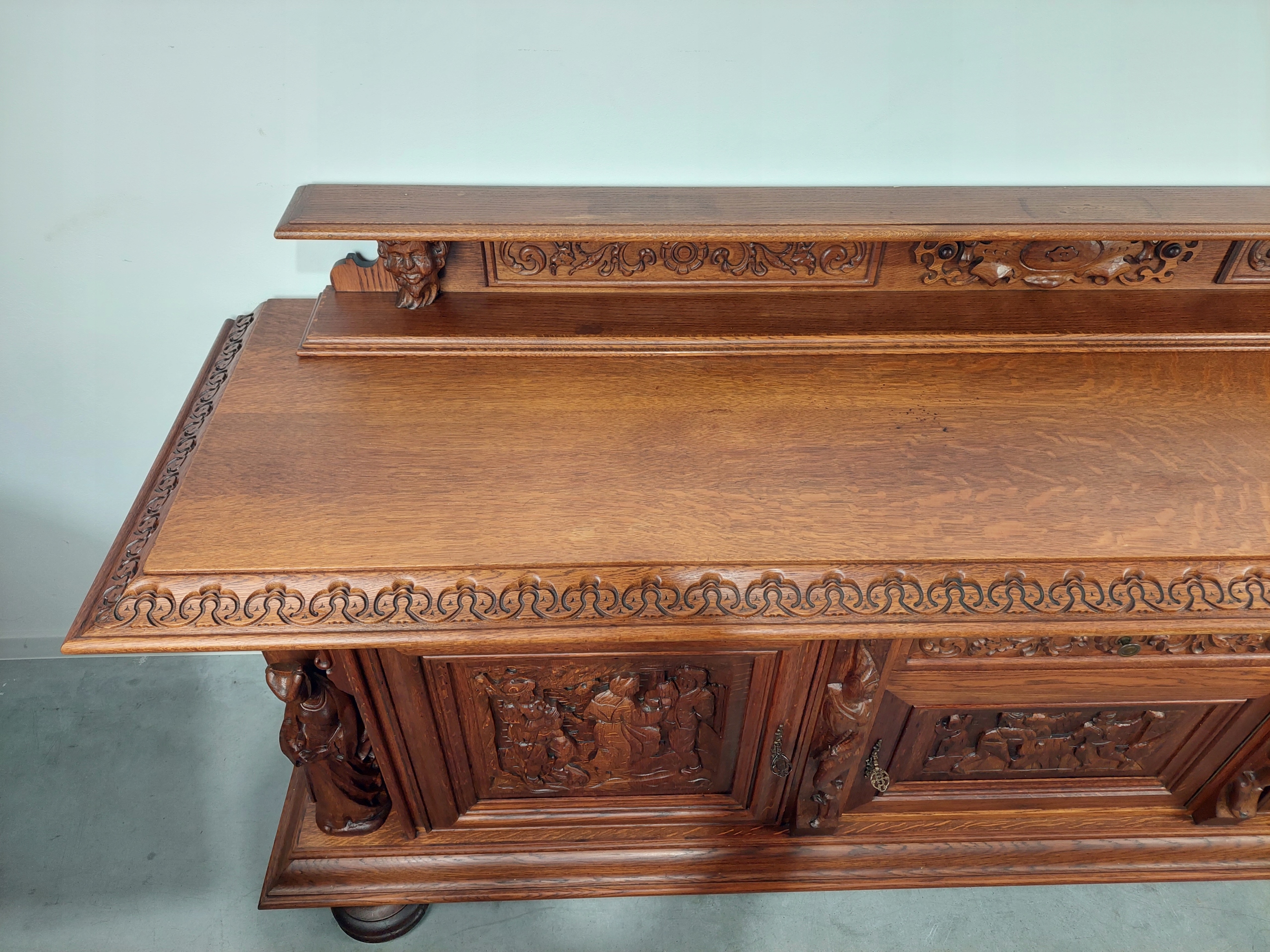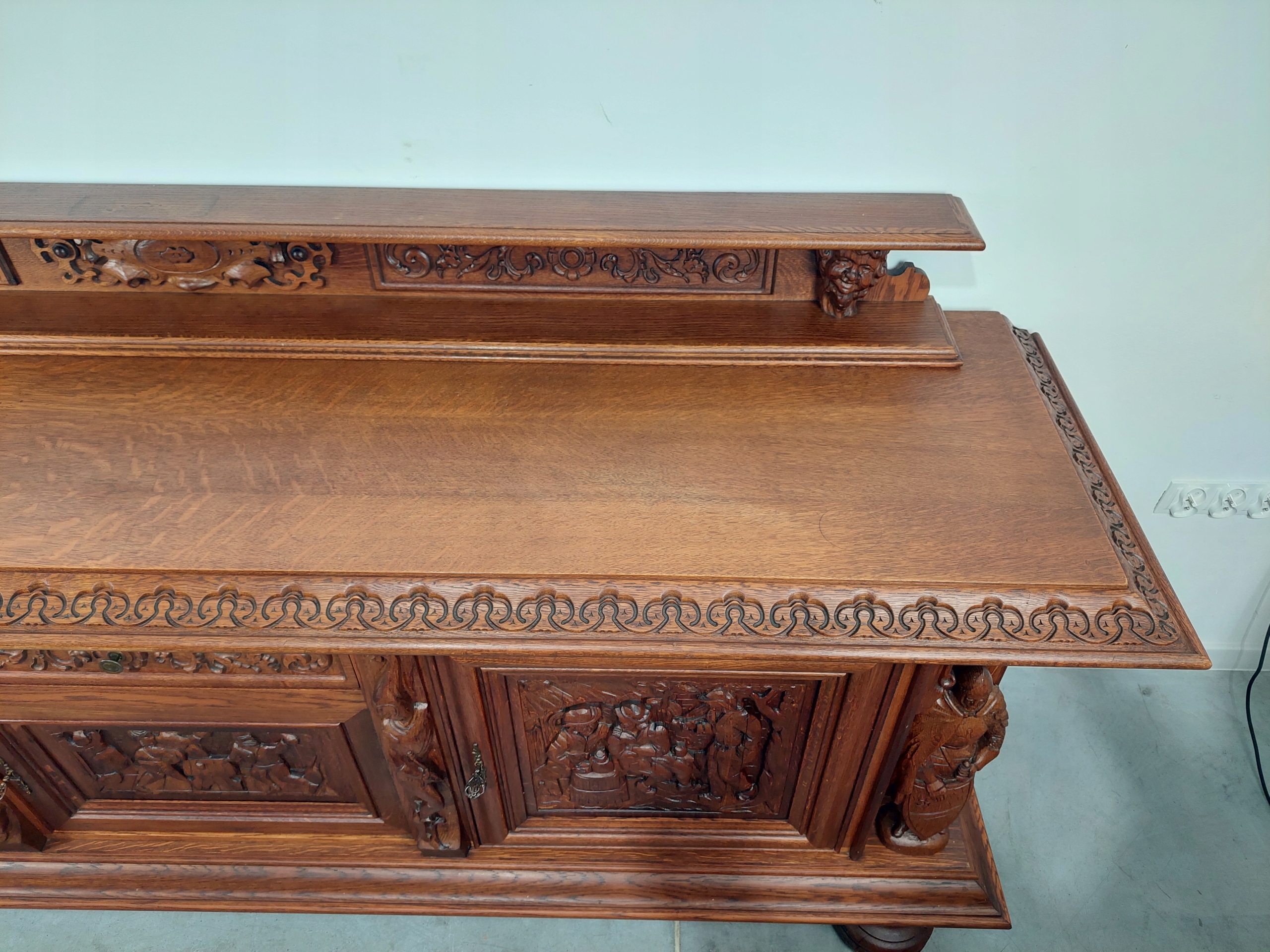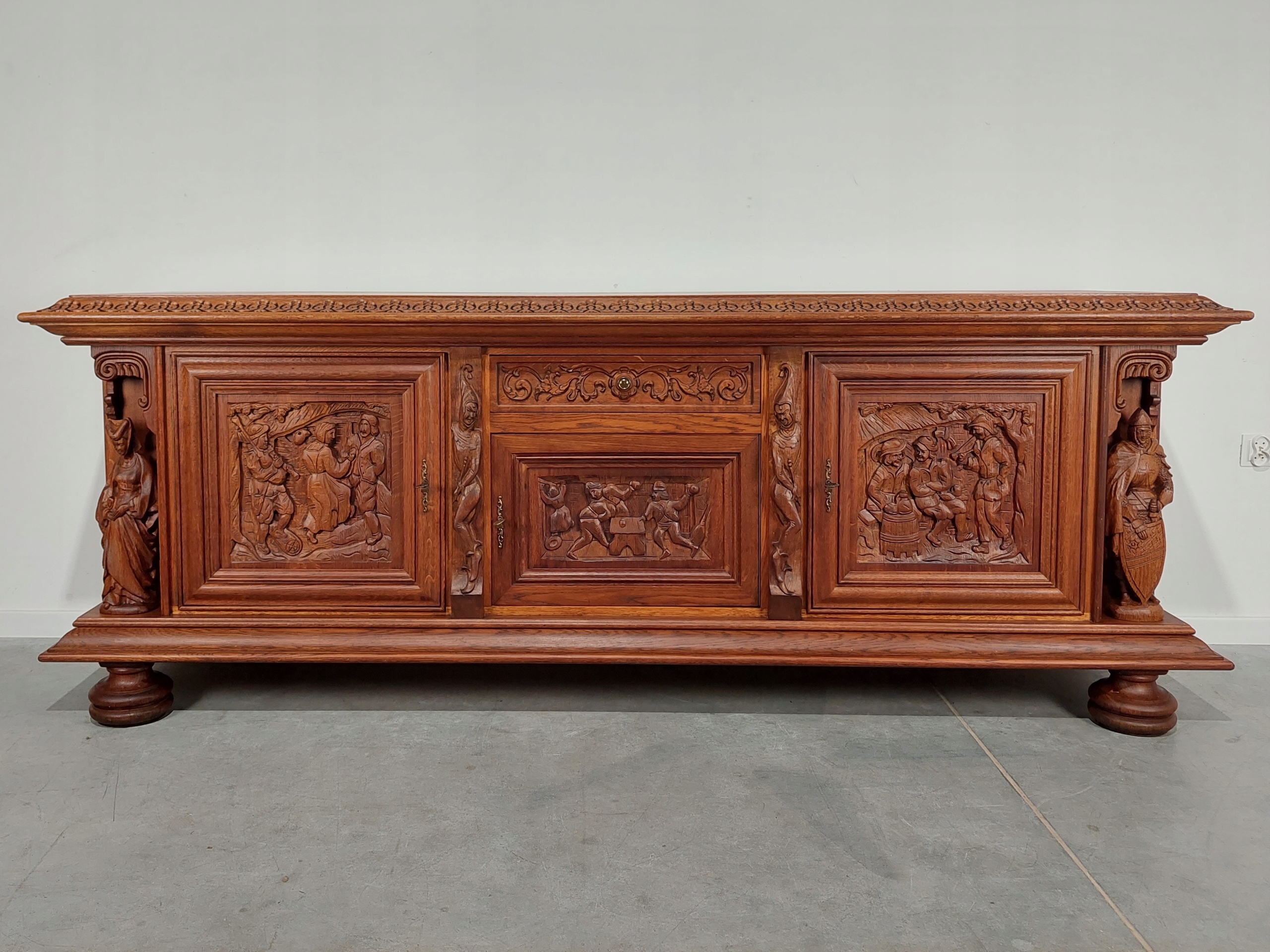 СТИЛЬНА РІЗЬБЛЕНА ЛИЦАРСЬКА СКРИНЯ, УНІКАЛЬНА, 255 СМ XXL МИСЛИВСЬКИЙ БУФЕТ