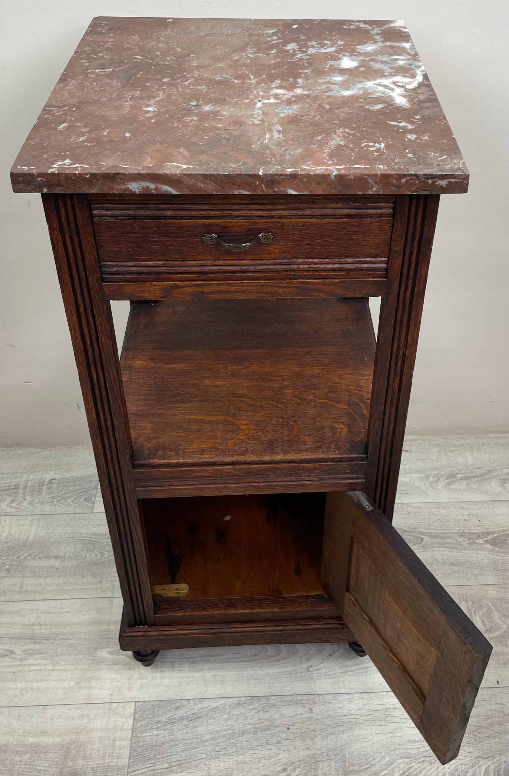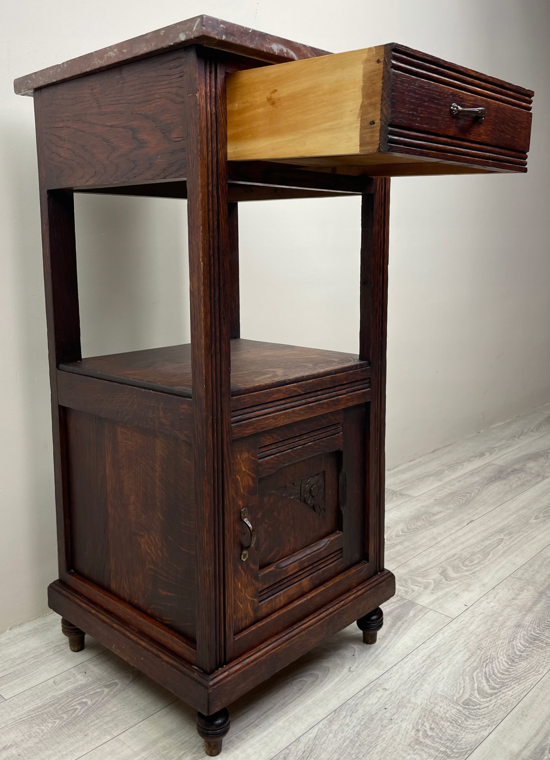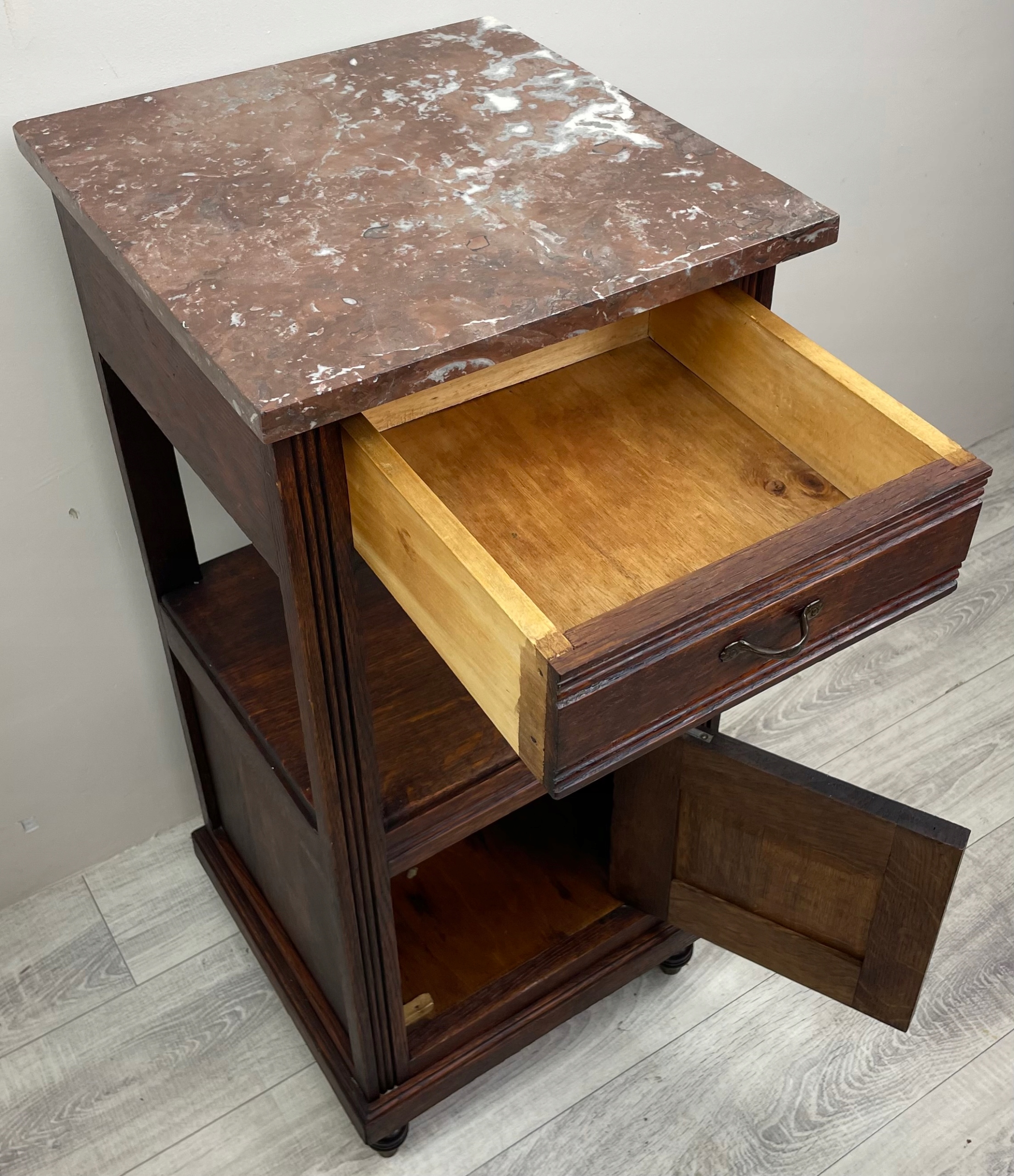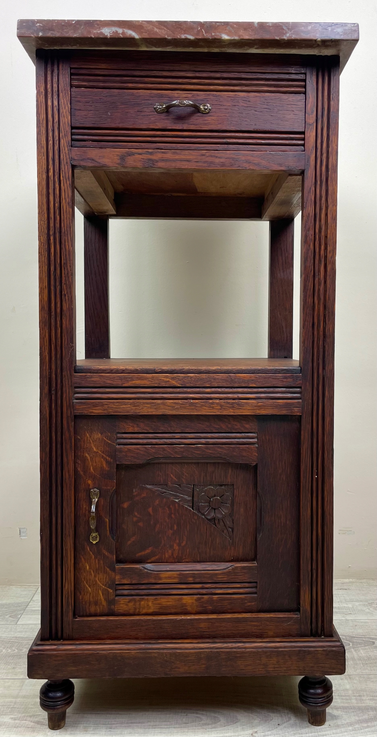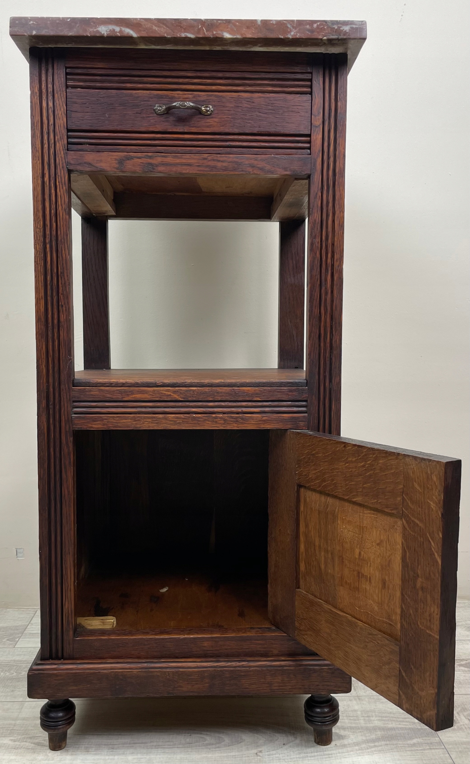 Шкаф имеет одну откидную фасадную часть. И один ящик.
