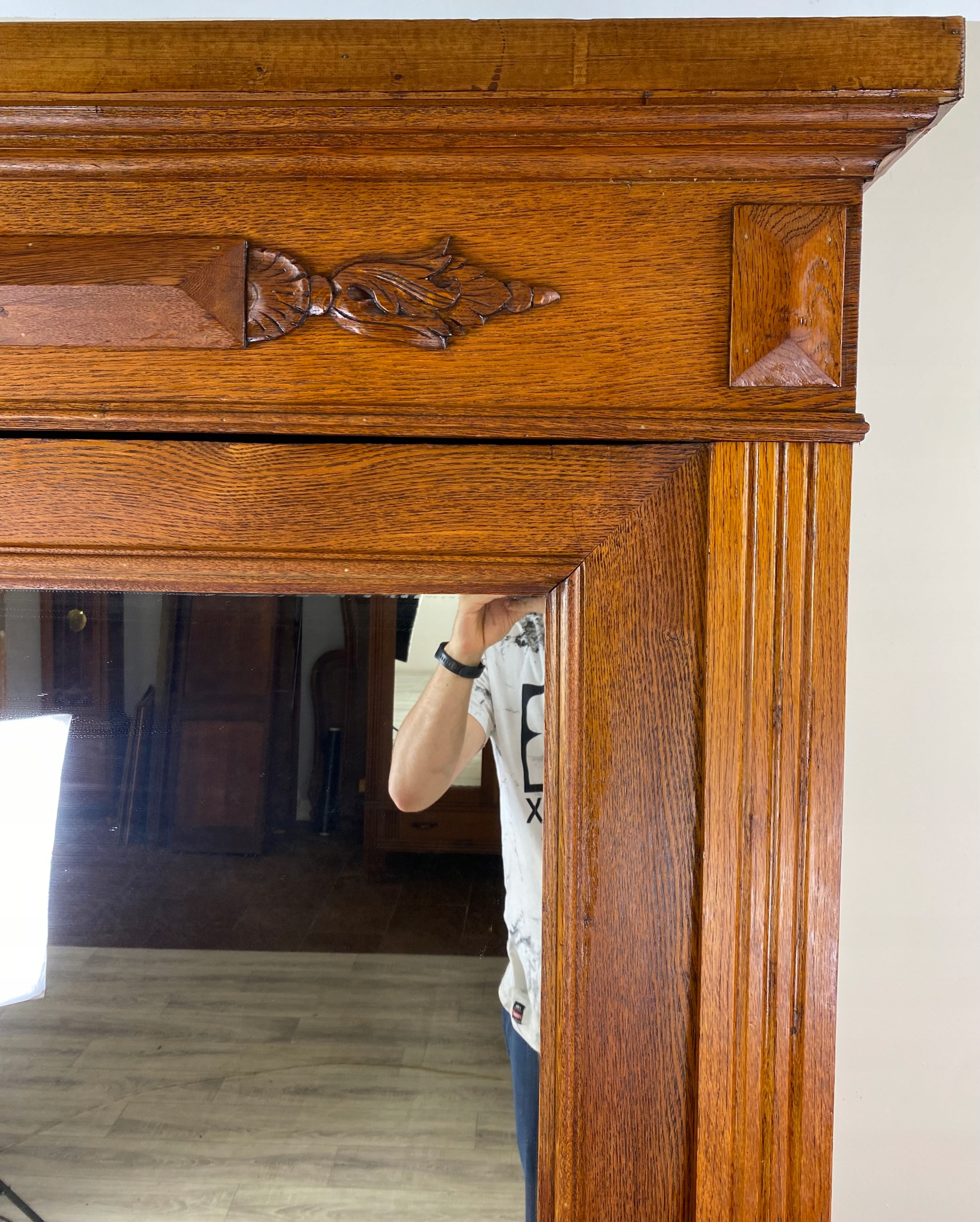 Предмет аукциона — СТИЛЬНЫЙ ЭКЛЕКТИЧНЫЙ ШКАФ ДУБОВЫЙ С ЗЕРКАЛОМ.