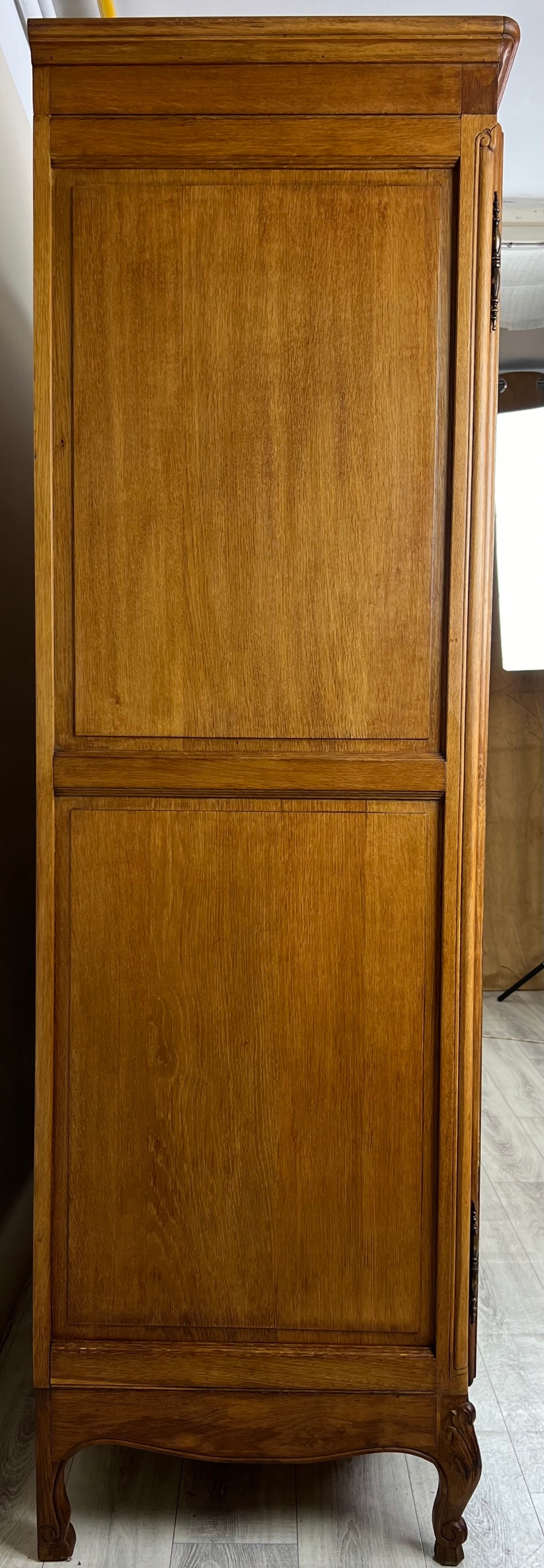 Шкаф стоит на согнутых ножках.