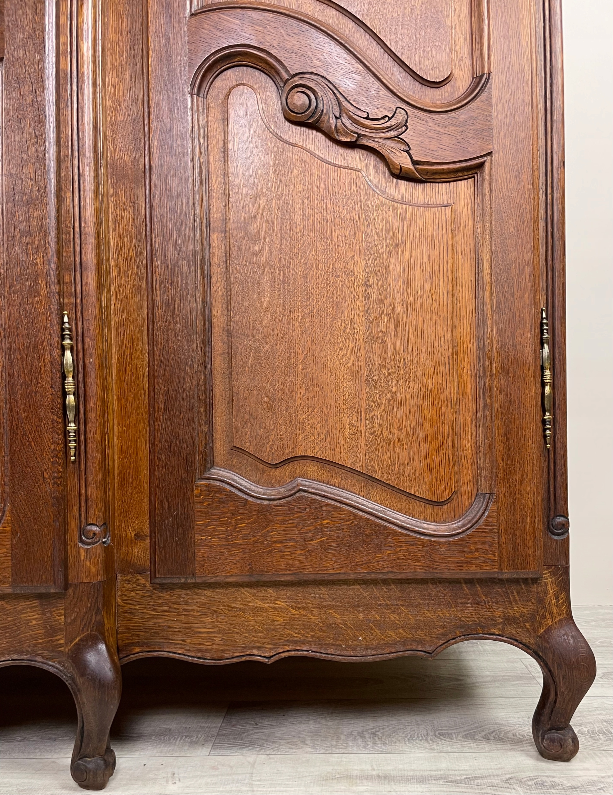 Шкаф стоит на согнутых ножках.