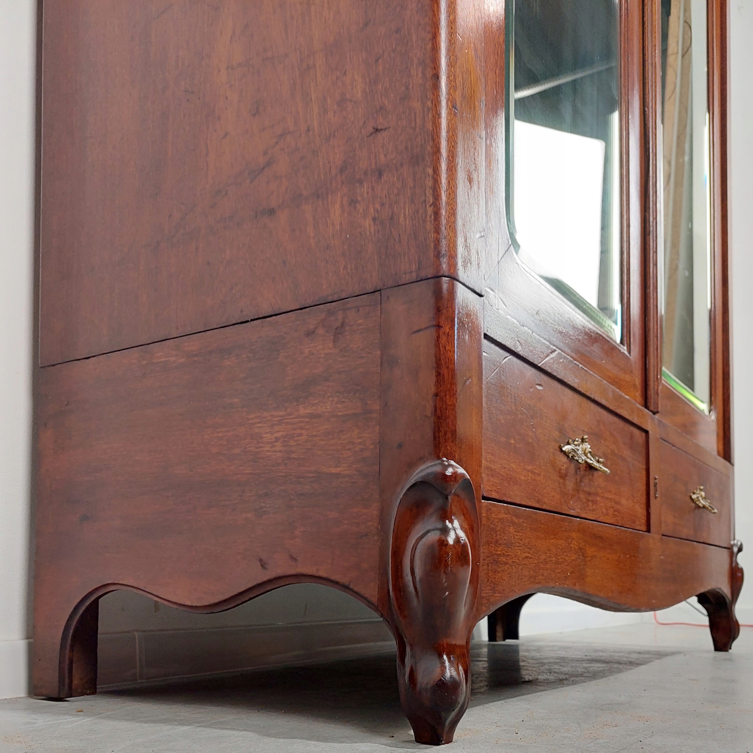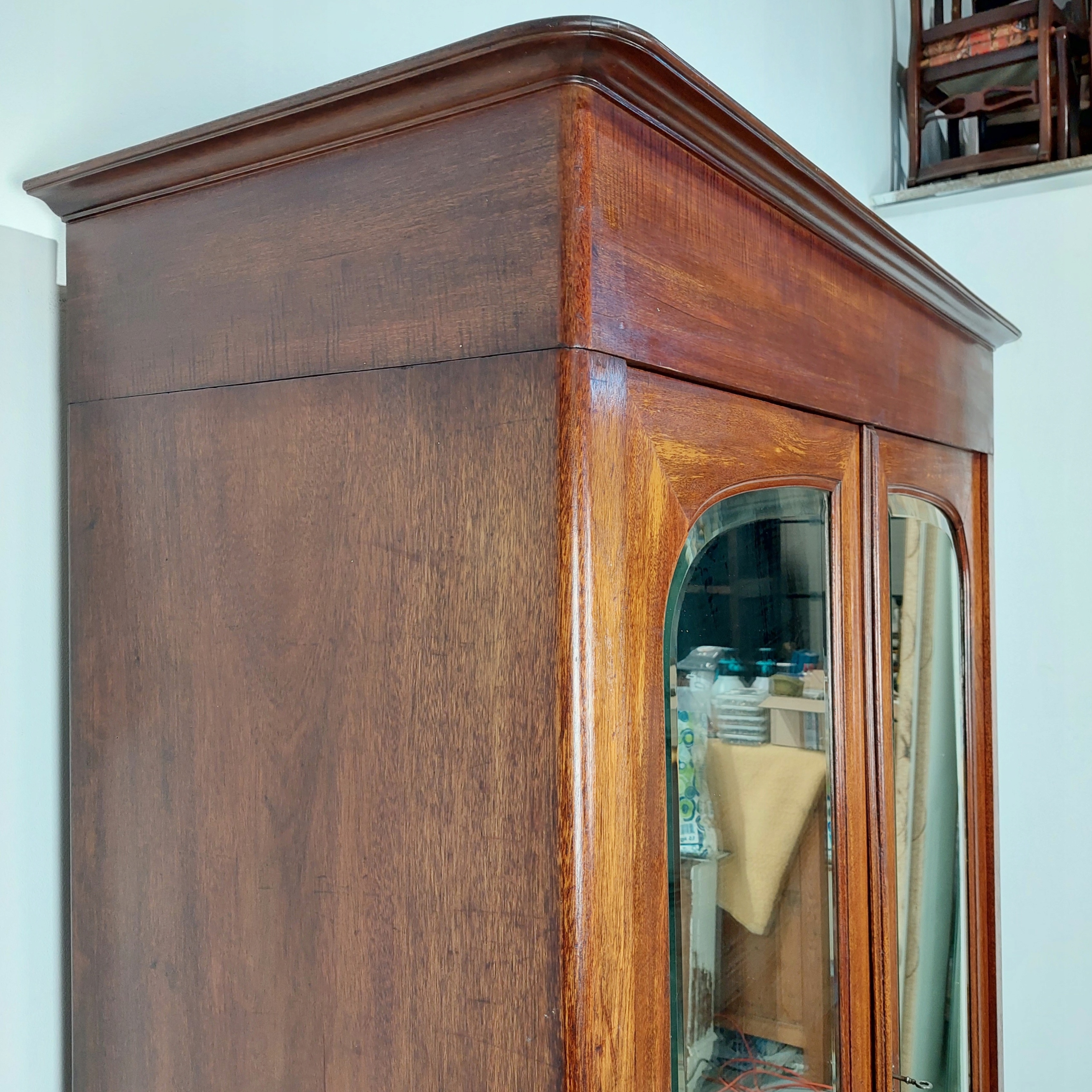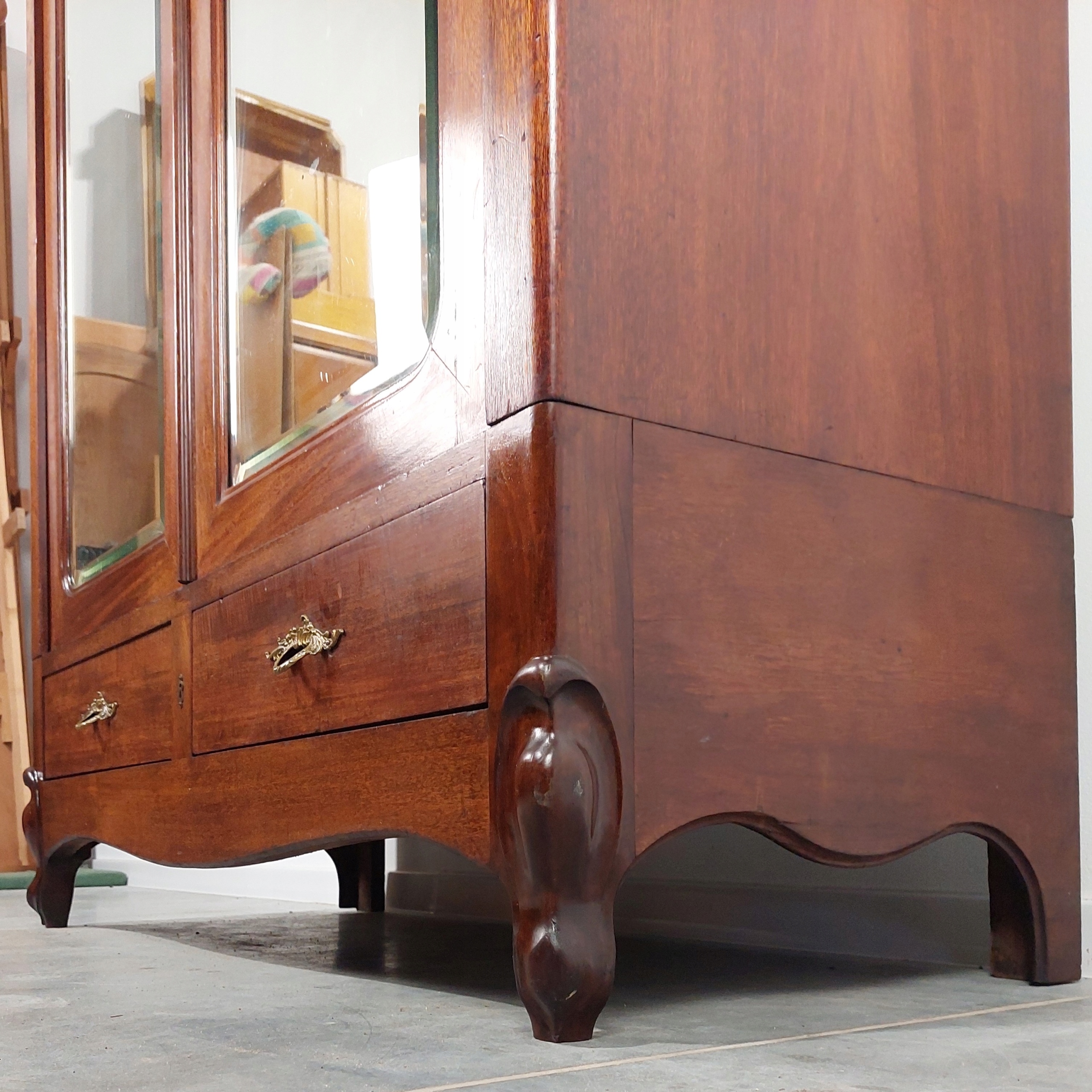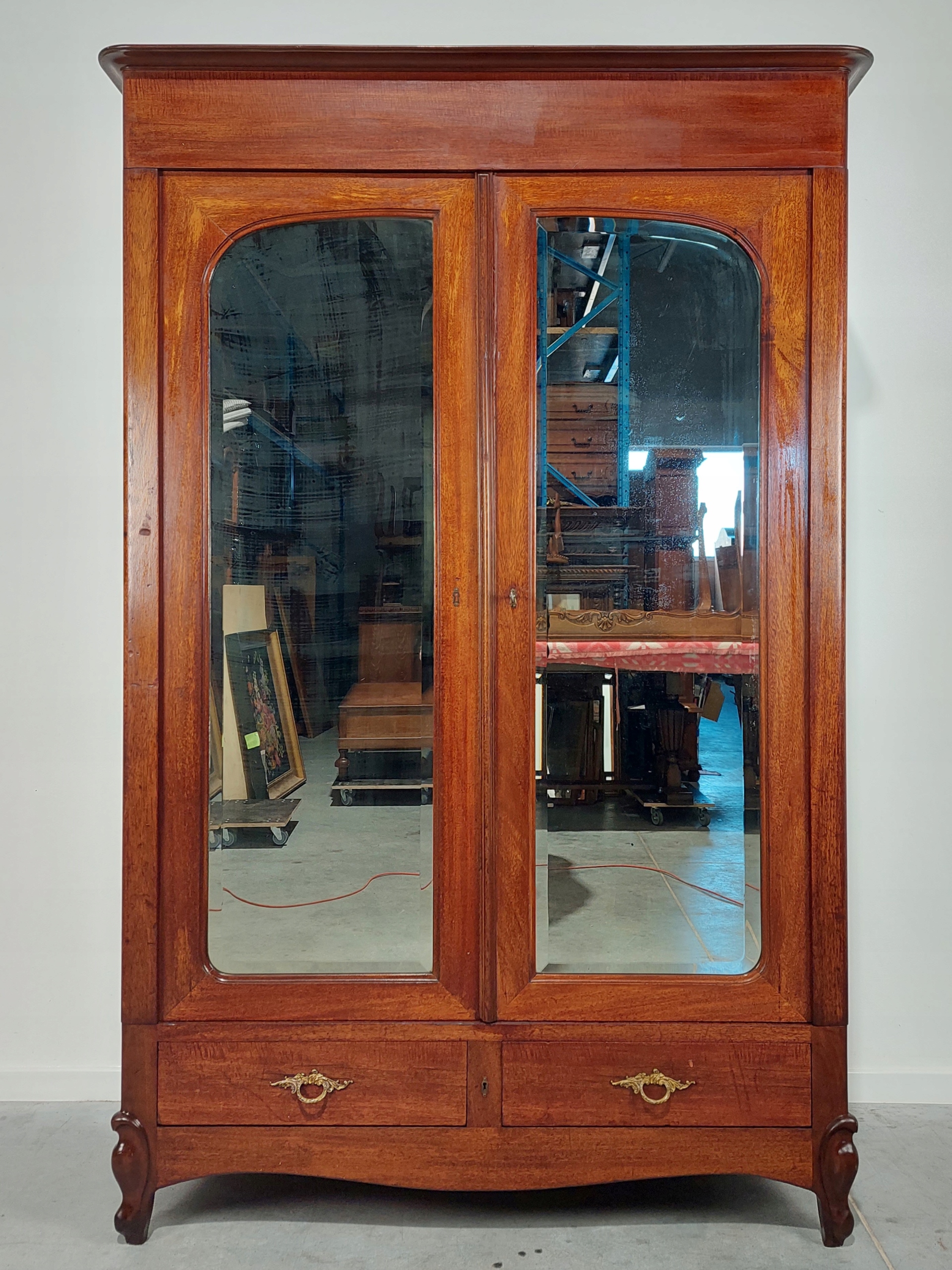 Стильный 2-дверный шкаф - Шкаф в стиле модерн из древесины ореха. Дата производства 1911 г. (подпись видна на фотографиях) Мебель имеет характерные следы использования, видимые на фотографиях. Следы ремонта по центральной полосе. Фацетированное хрустальное стекло в хорошем состоянии (единичные пятна/точки окисления). Внутри практически нет места, а оголовье занимает всю ширину мебели. Замок двери работает, ключ в комплекте (уникальный тип закрытия: штифт внутри дверного полотна по всей длине двери), ключа от ящиков нет. Для транспортировки шкаф разбирается. Подробные фото ниже.