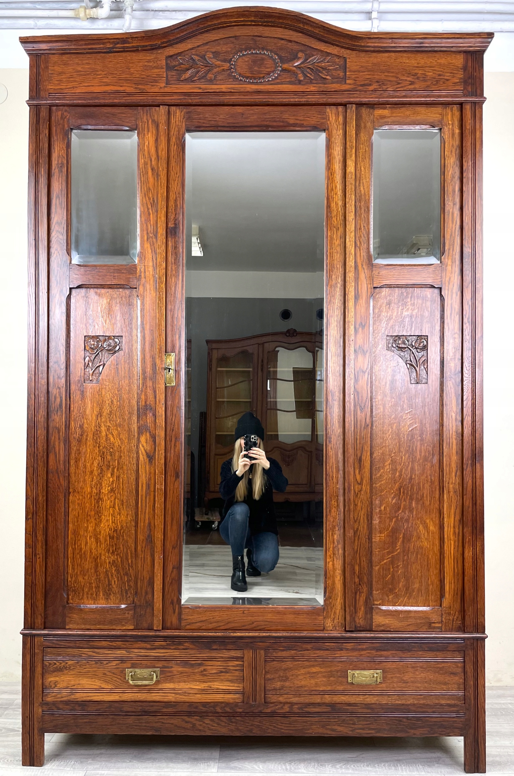 СТИЛЬНА ШАФА З ДЗЕРКАЛОМ АРТ ДЕКО СЕЦЕСІЯ МАСИВ ДУБА F77