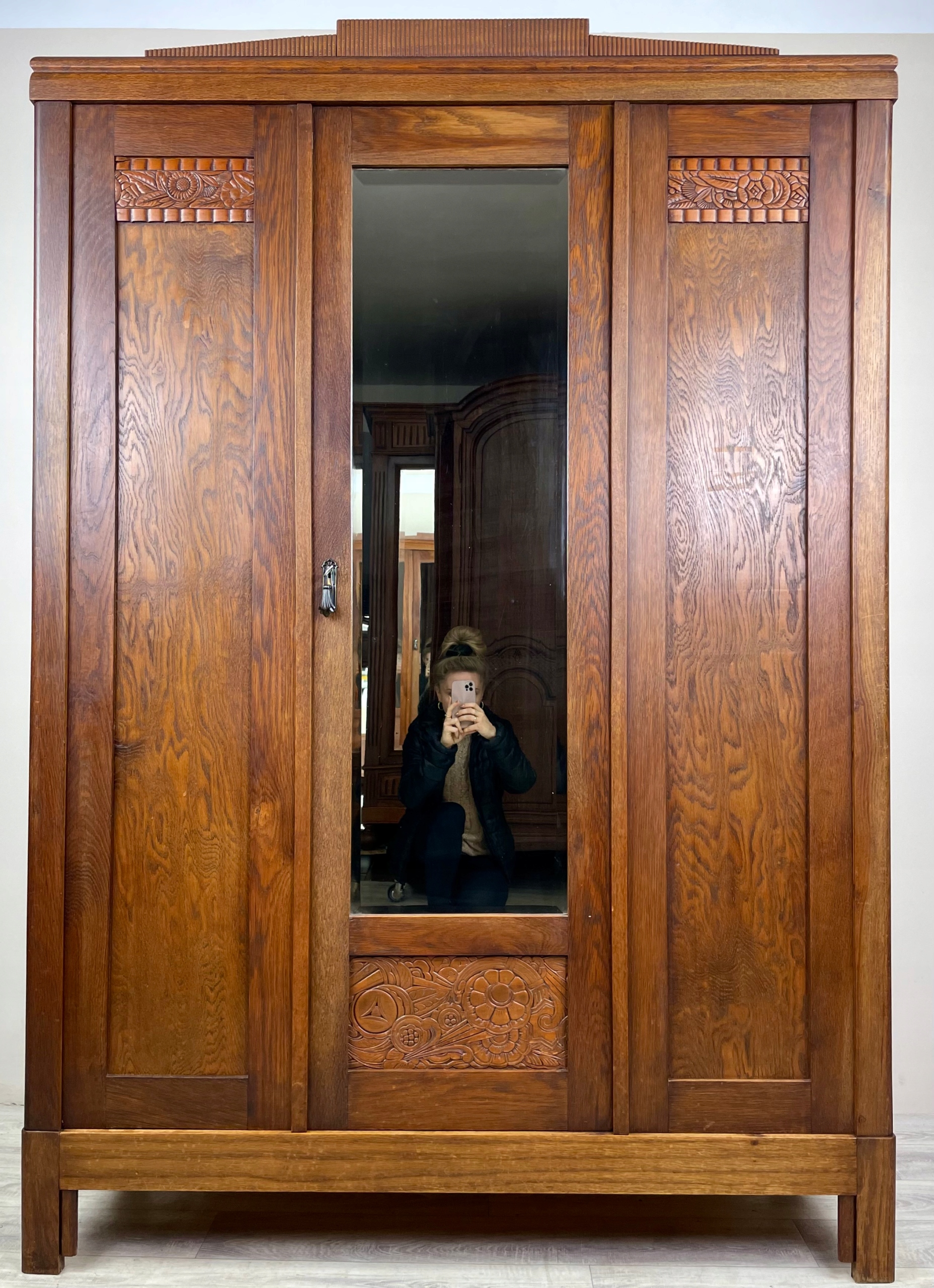 СТИЛЬНА ШАФА З ДЗЕРКАЛОМ АРТ ДЕКО СЕЦЕСІЯ МАСИВ ДУБА ФРАНЦІЯ L55