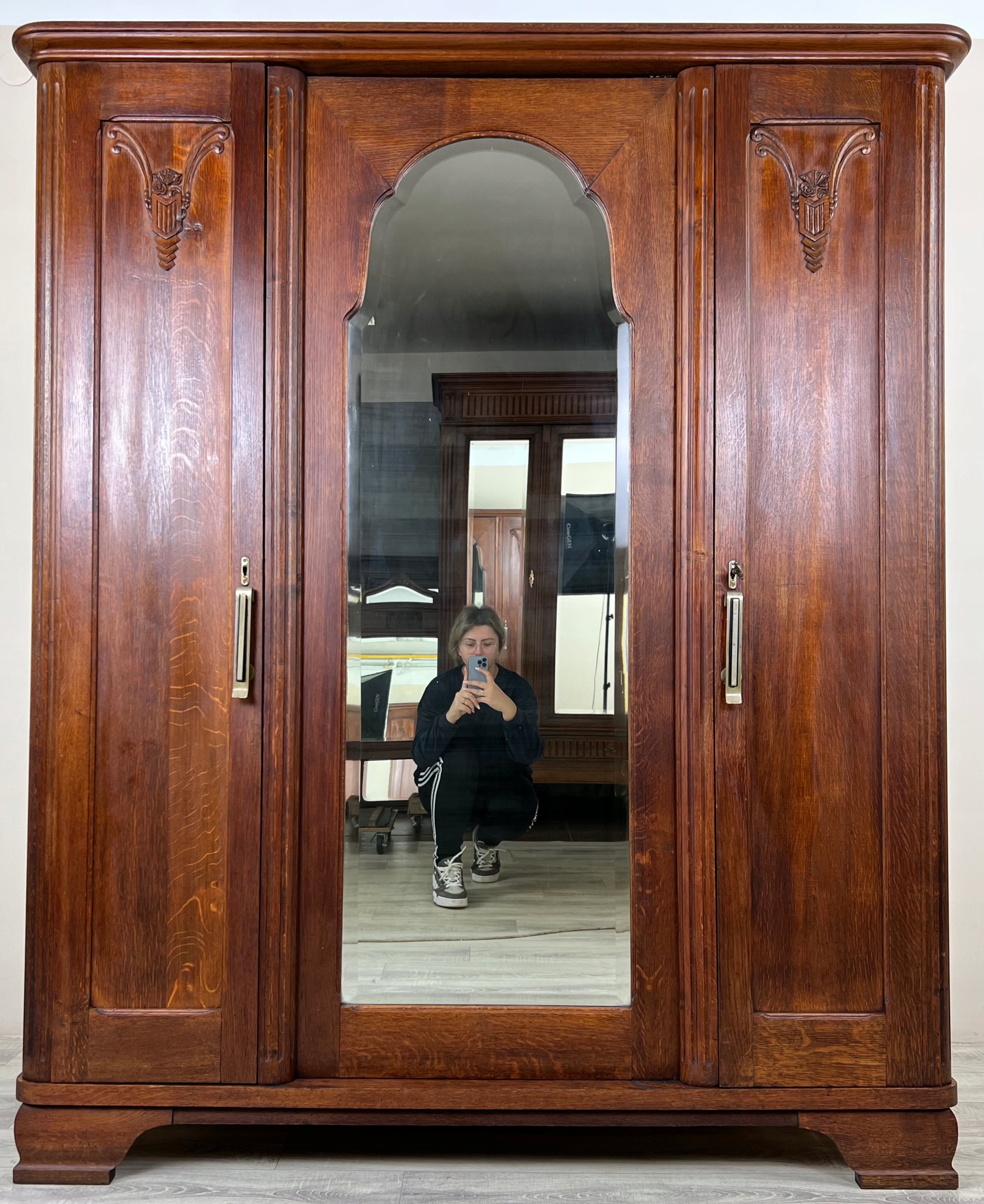 СТИЛЬНА ШАФА З ДЗЕРКАЛОМ АРТ ДЕКО СЕЦЕСІЯ МАСИВ ДУБА ФРАНЦІЯ L65