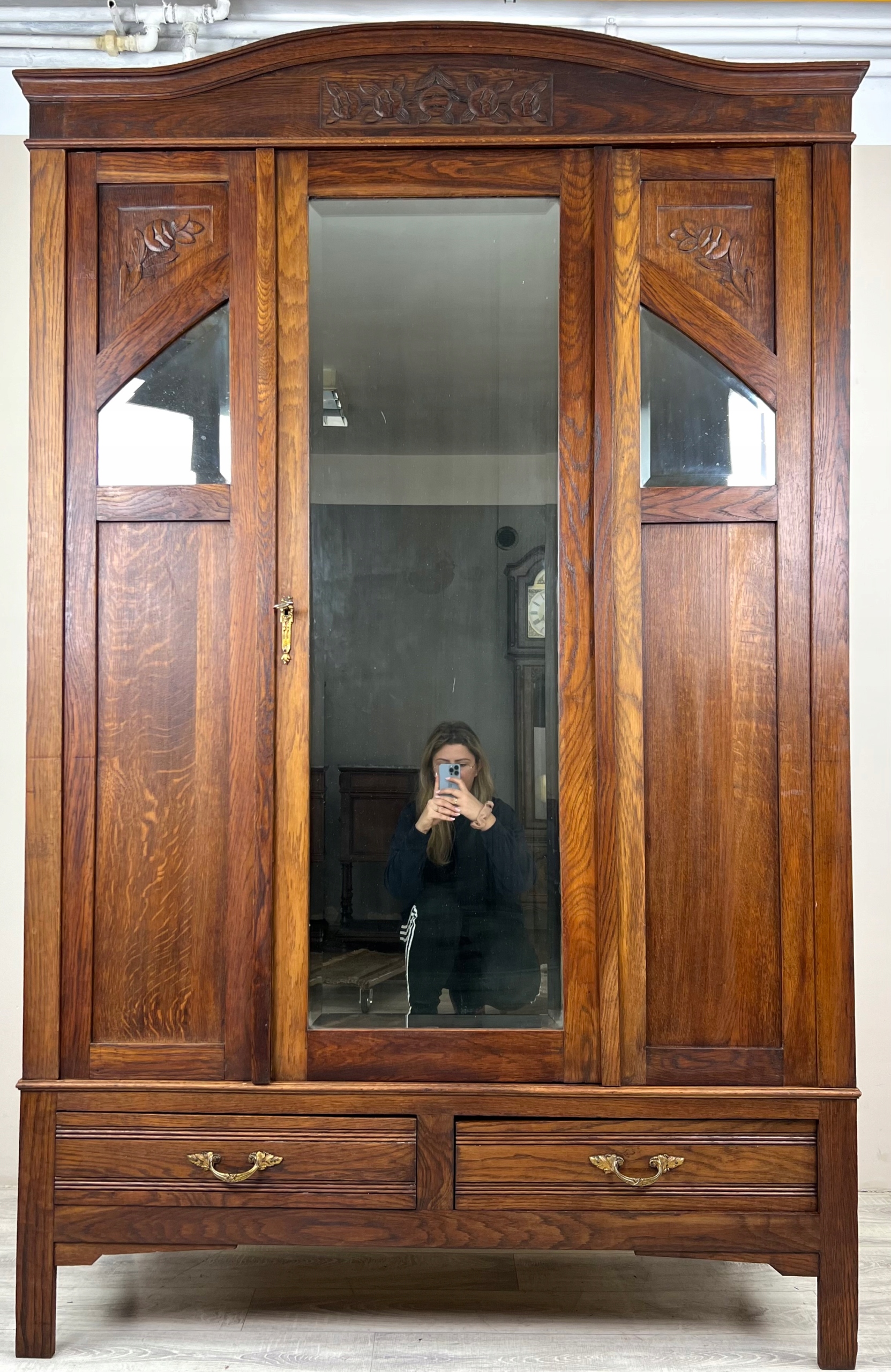 СТИЛЬНА ШАФА З ДЗЕРКАЛОМ АРТ ДЕКО СЕЦЕСІЯ МАСИВ ДУБА ФРАНЦІЯ M10