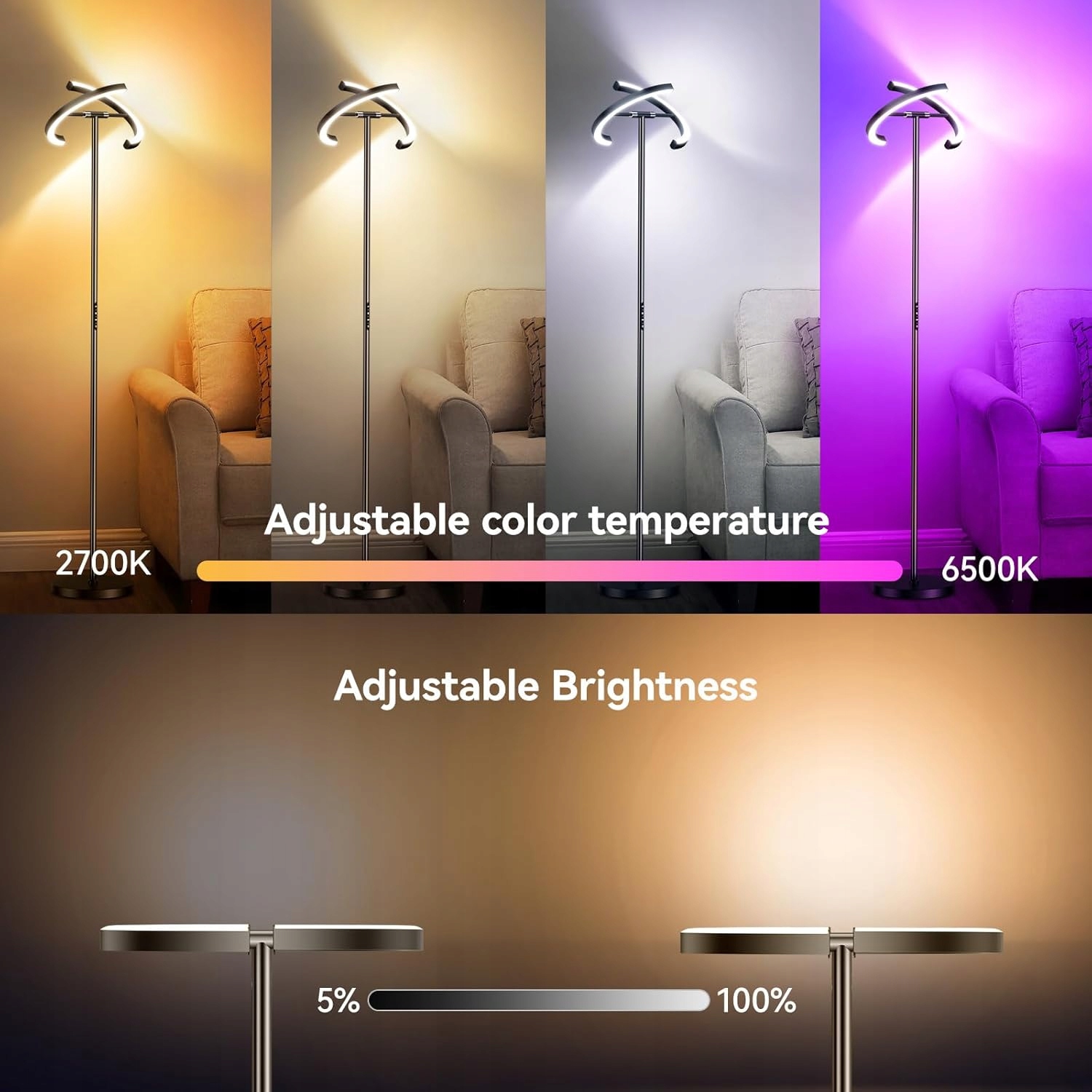 🌤 Диапазон температур: 3000k - 6000k (теплый, нейтральный и холодный свет)