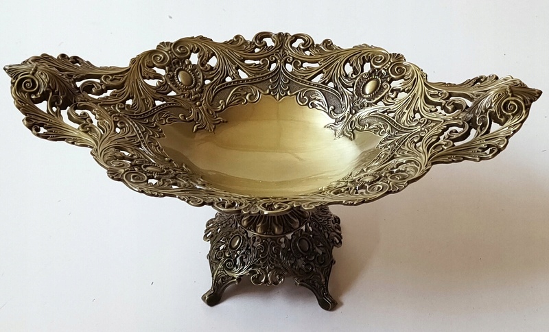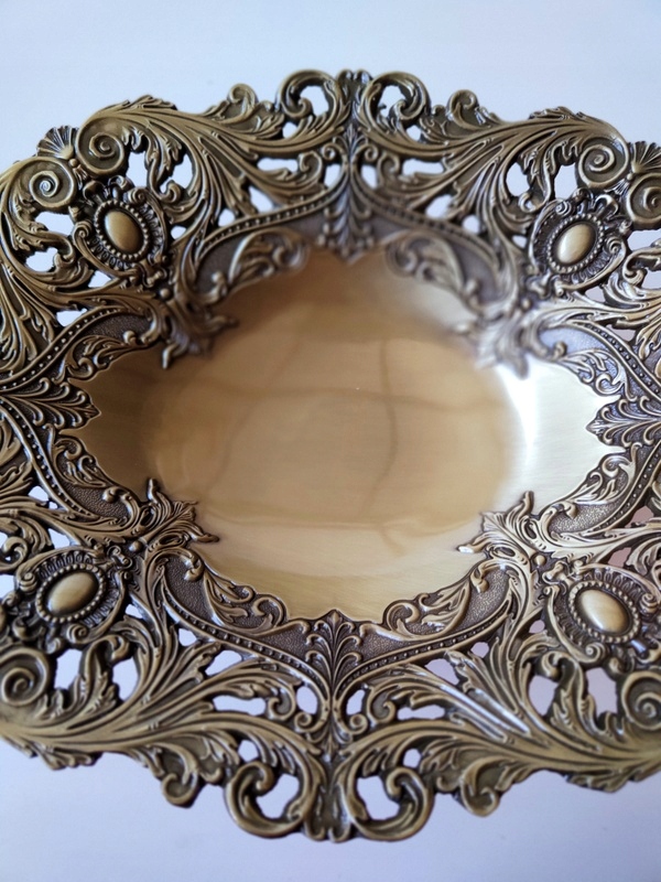 Сегодня создано феноменальное блюдо. Изготовлен из цинкового сплава, покрыт латунью цвета старого золота, богато декорирован по всей поверхности. Товар новый, не использовался. Идеально подходит в качестве декоративного элемента, сосуда для сладостей или изысканного подарка к особому случаю.