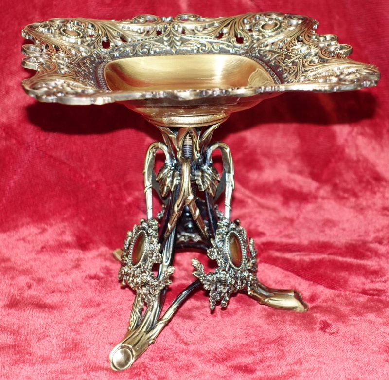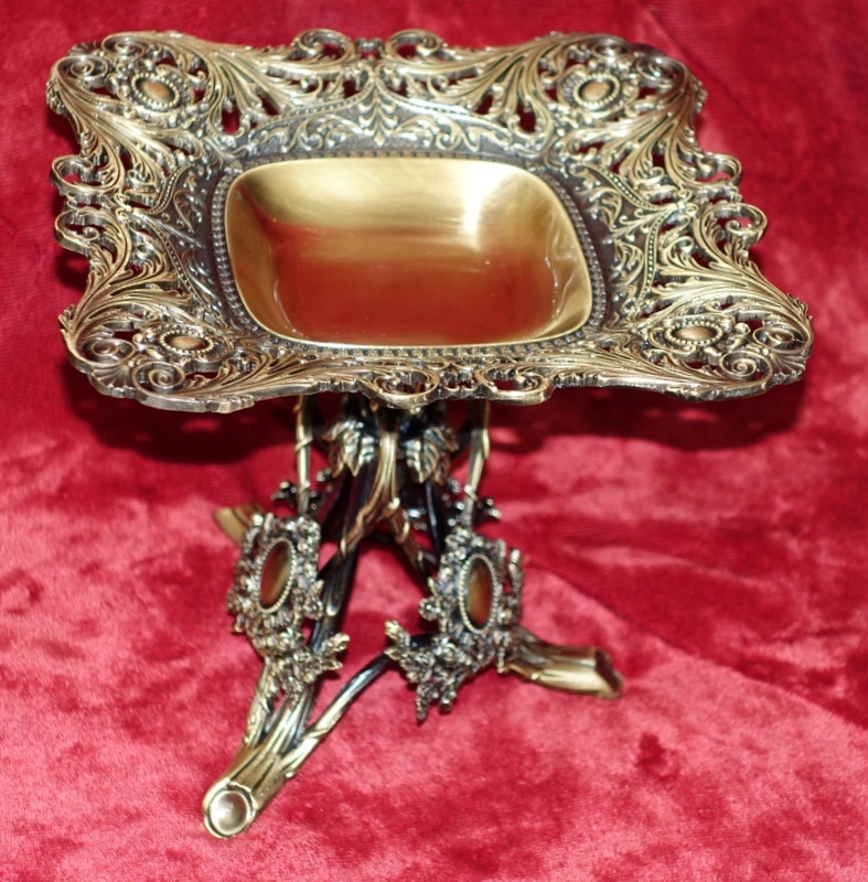 Сегодня создано феноменальное блюдо. Изготовлен из цинкового сплава, покрыт латунью цвета старого золота, богато декорирован по всей поверхности. Товар новый, не использовался. Идеально подходит в качестве декоративного элемента, сосуда для сладостей или изысканного подарка к особому случаю.