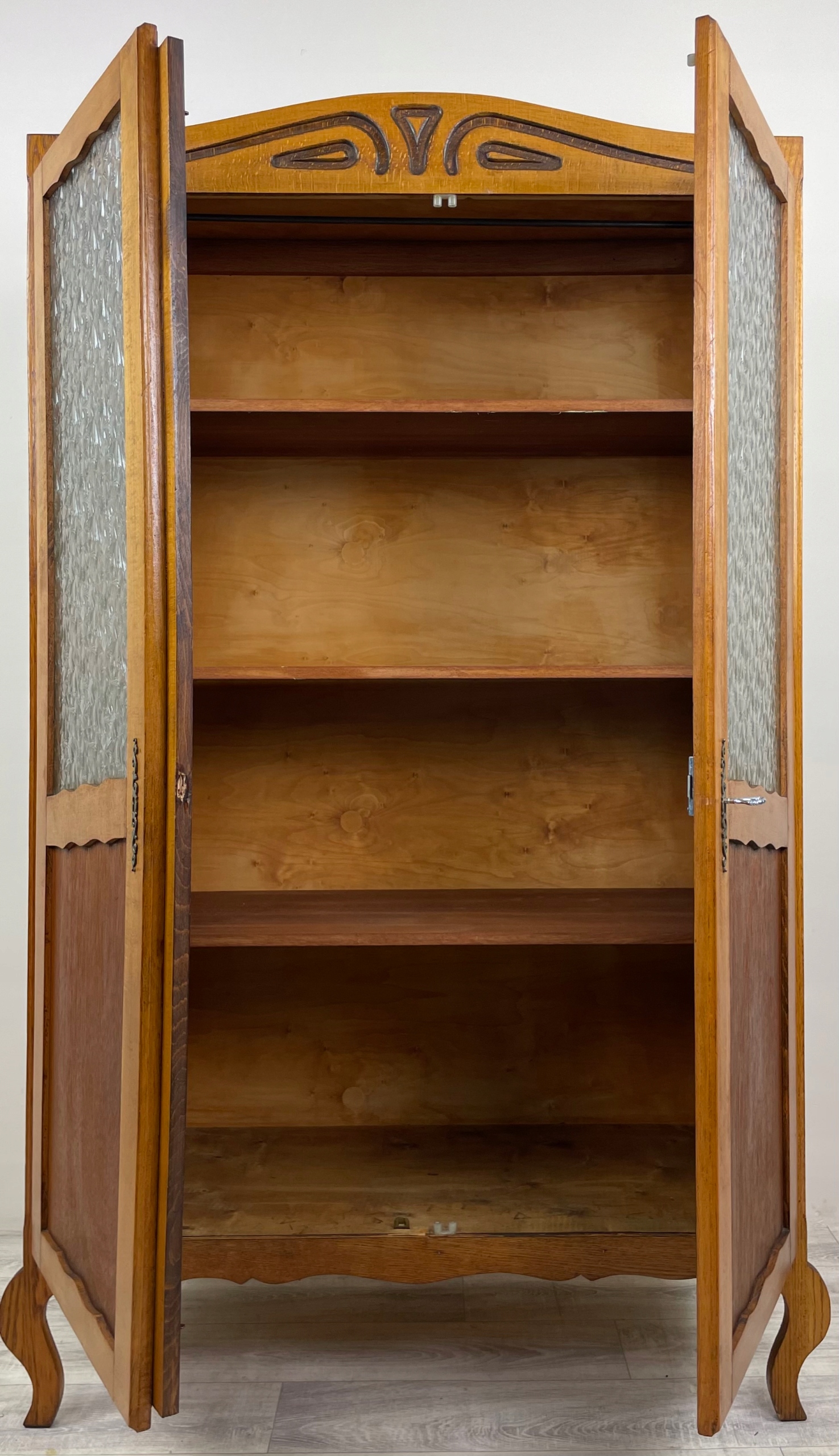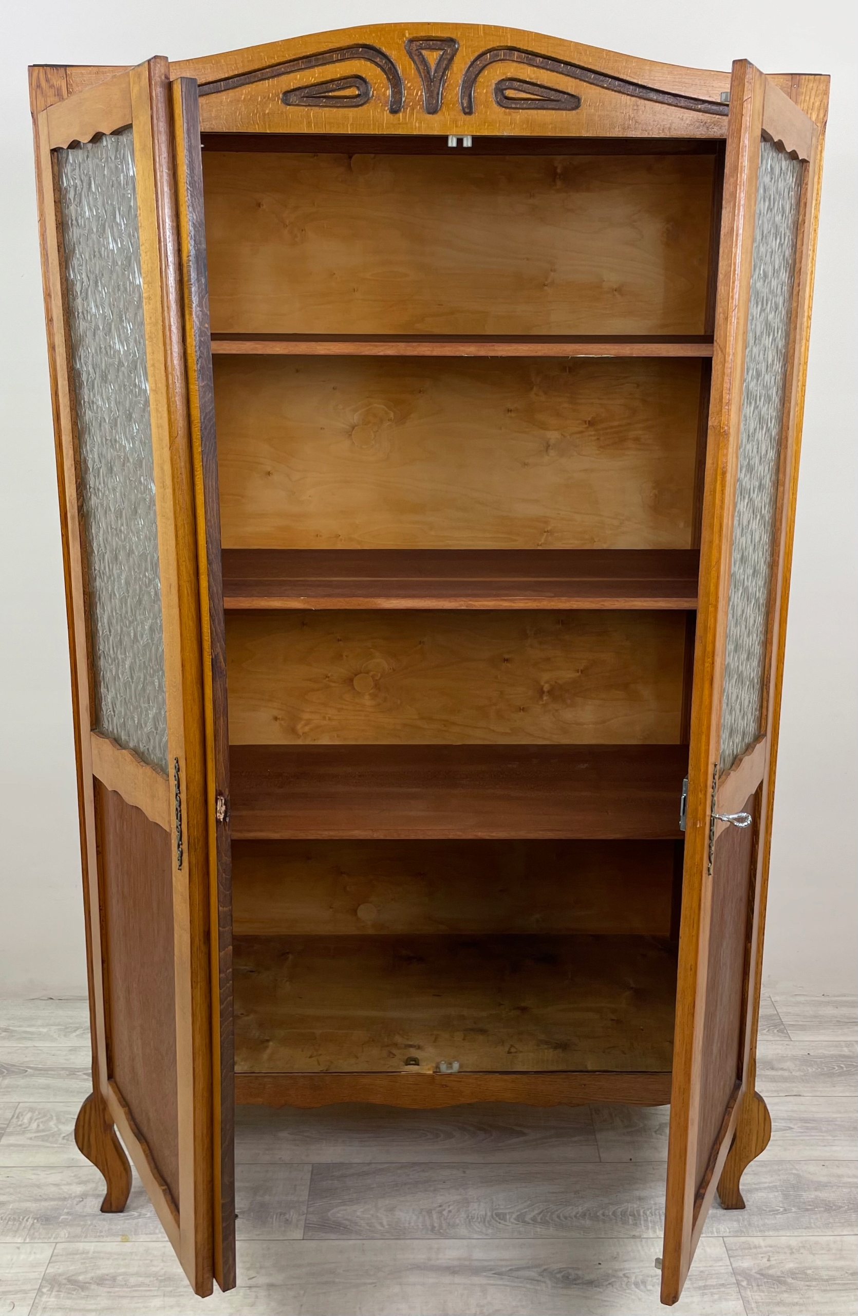 В витрине две фасады откидные, полки внутри.