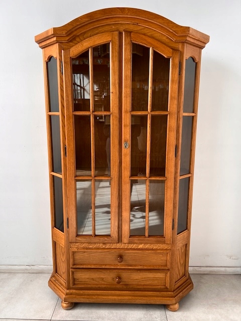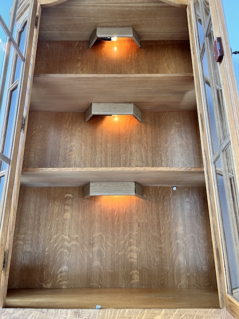 Стильный сайт. Он находится в хорошем состоянии. Повреждений и дефектов нет. На нем видны типичные следы использования. внутри три полки. Над каждой полкой имеется освещение. Замок функциональный, в комплекте есть ключ. Витрина не подлежит разборке и доставляется новому владельцу в разобранном виде. Он готов к вставке.