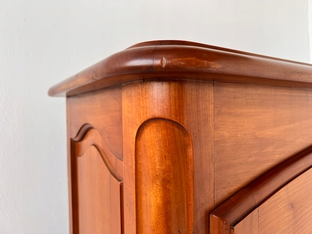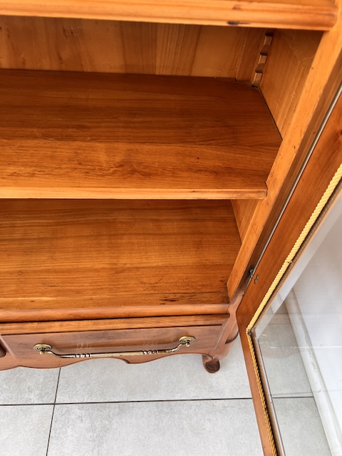 Стильный сайт. Он находится в хорошем состоянии. Повреждений и дефектов нет. Имеет характерные следы использования. Окна дверей стеклянные. Окна скошены. Замок функциональный, в комплекте есть ключ. Внутри три полки, высота которых свободно регулируется. На них имеются небольшие изменения цвета. Под дверью есть два практичных ящика. Сайт не подлежит демонтажу. Он готов к вставке.