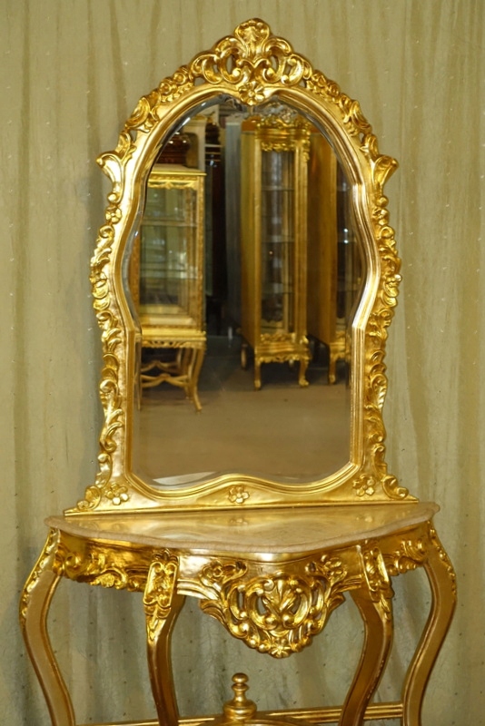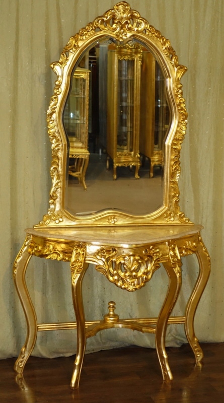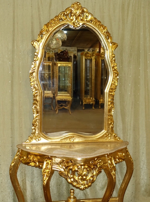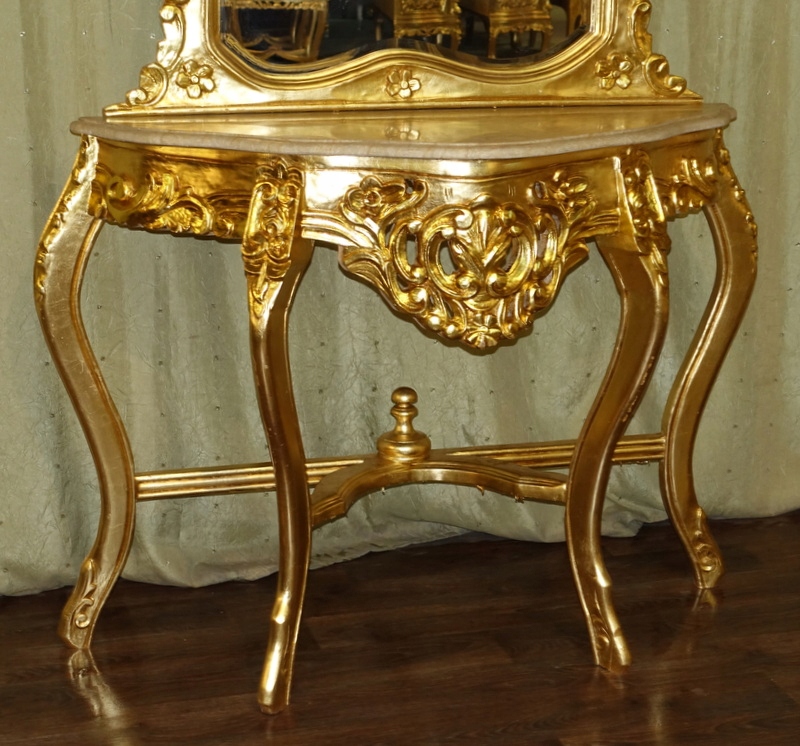 Стильная консоль золотого барокко с зеркальным туалетным столом
