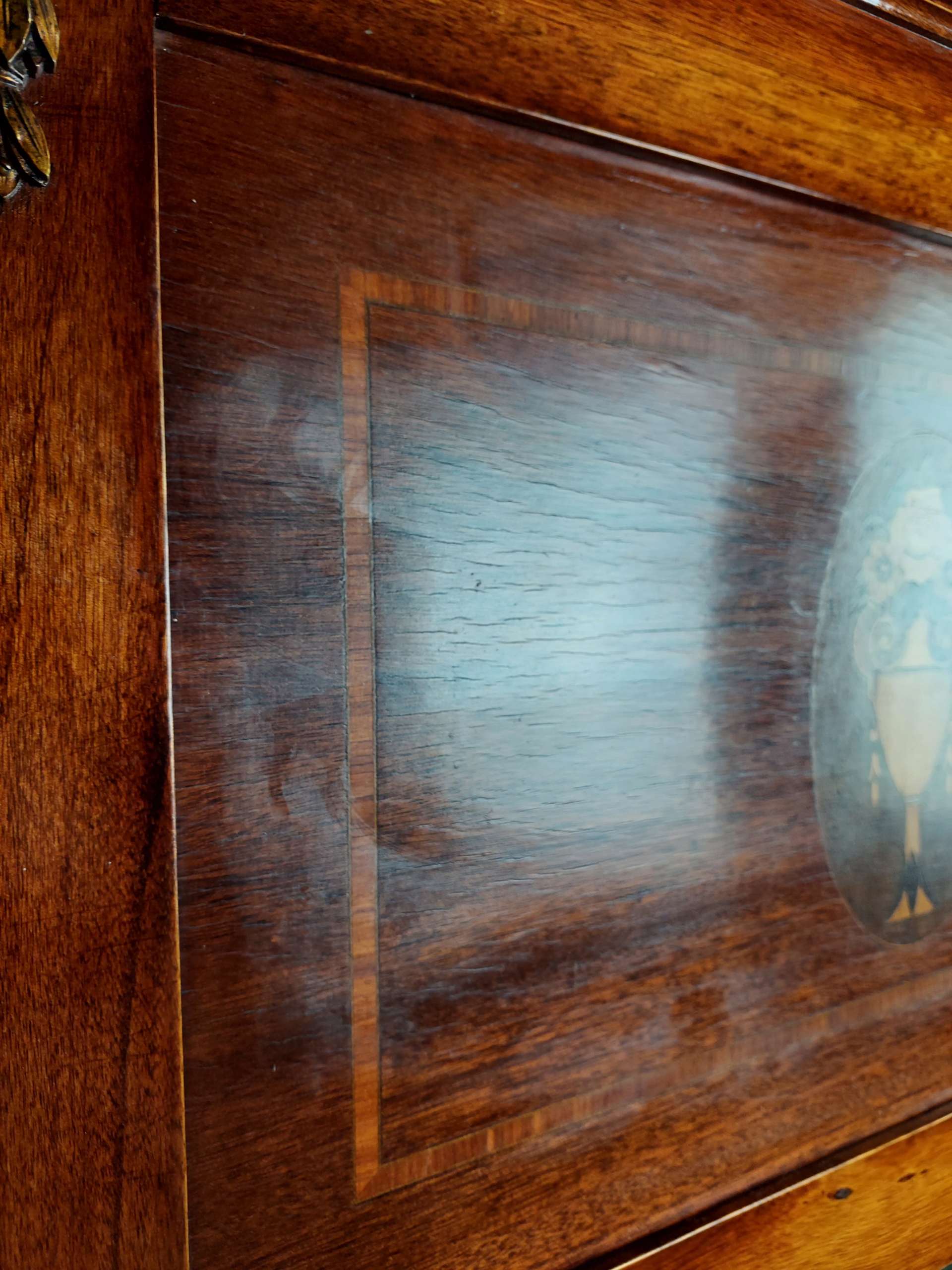 Стильное зеркало в стиле ампир, также известном как ампир. Шпонированное зеркало с красивой инкрустацией и латунным декором по бокам. Зеркало датировано маем 1924 года. Хрусталь скошенный, стекло в хорошем состоянии, есть дефекты возраста. Возможны следы ремонта/использования. Подробности на фотографиях ниже.