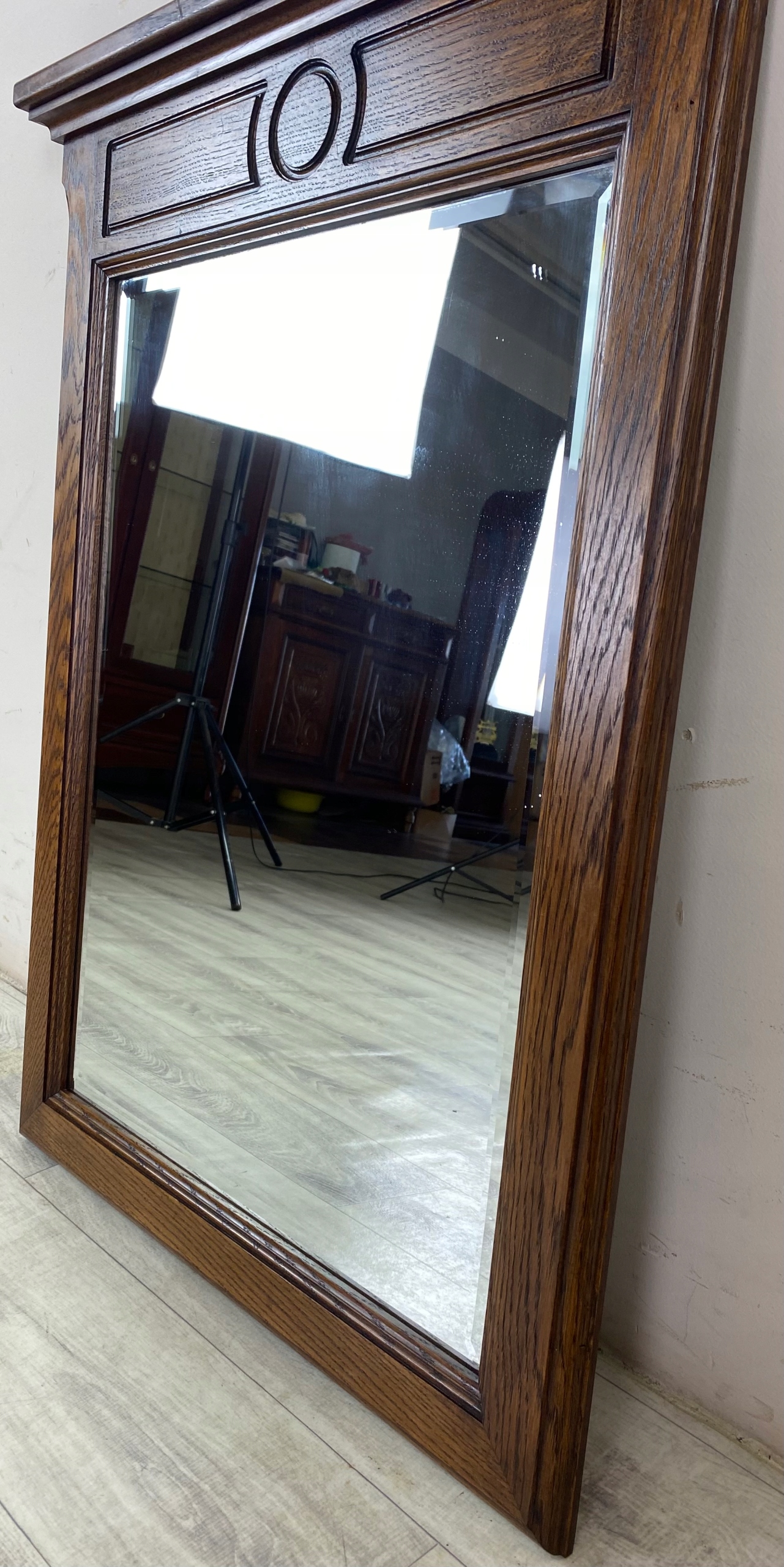Тема аукциона - это стильное зеркало в дубовой рамке, висящей стены