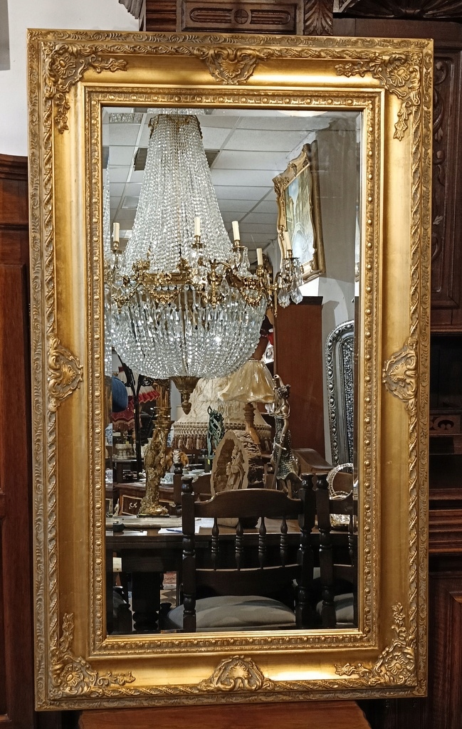 Красивое и впечатляющее хрустальное зеркало (фацетированное стекло) в чудесной деревянной раме цвета старого золота, дополнительно украшенное чудесным декором. Зеркало, выполненное в современном стиле, но похожее на старинный антикварный экспонат. Они восхищают своей изысканностью и оригинальностью.