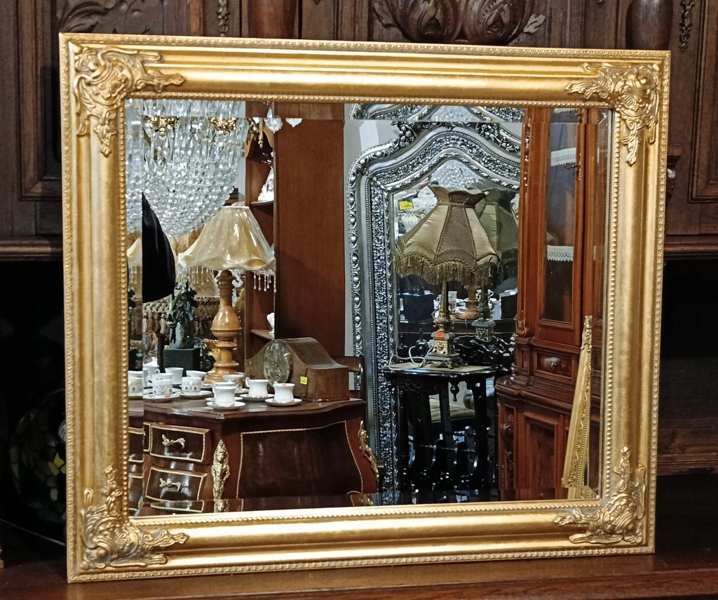 Красивое и эффектное хрустальное зеркало (фацетированное стекло) в красивой деревянной раме цвета старого золота, дополнительно украшенное изящным декором. Зеркало, выполненное в современном стиле, но похожее на старинный антикварный экспонат. Они радуют своей изысканностью и оригинальностью. Зеркало можно повесить вертикально или горизонтально.