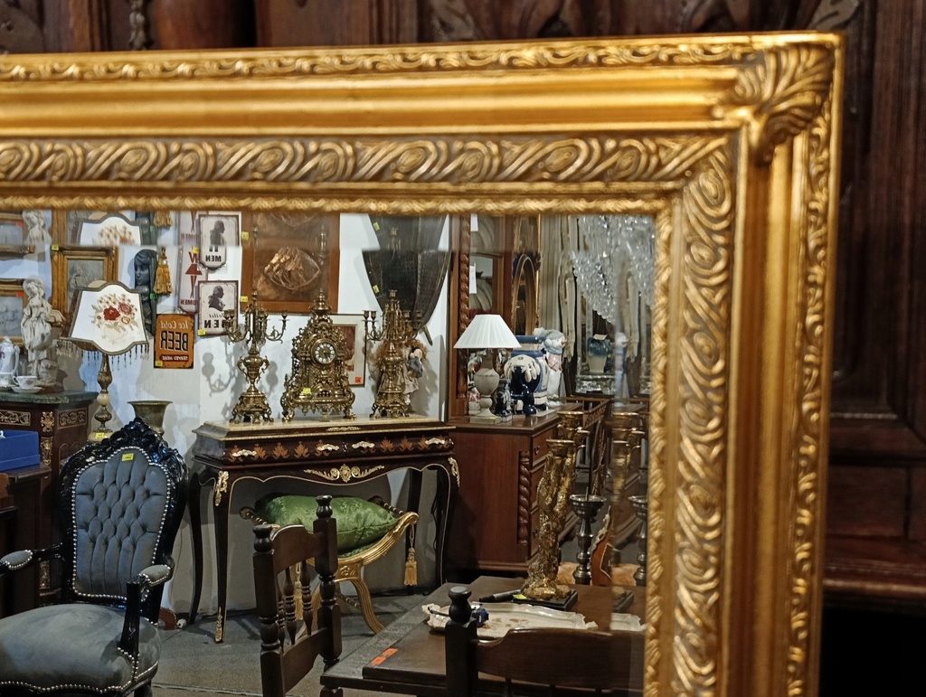 Красивое и эффектное хрустальное зеркало (фацетированное стекло) в чудесной деревянной раме цвета старого золота, дополнительно украшенное изящным декором. Зеркало, выполненное в современном стиле, но похожее на старинный антикварный экспонат. Они восхищают своей изысканностью и оригинальностью.