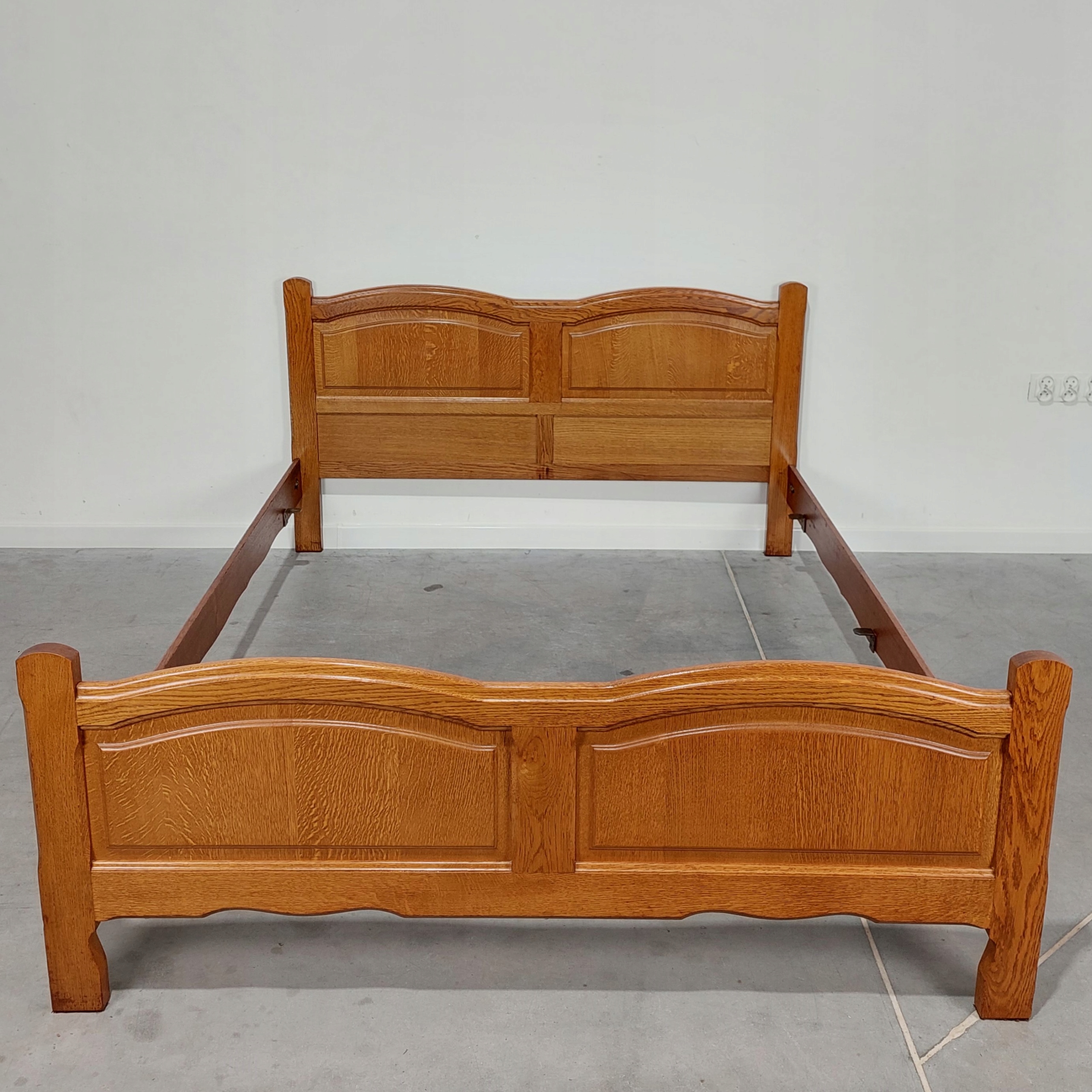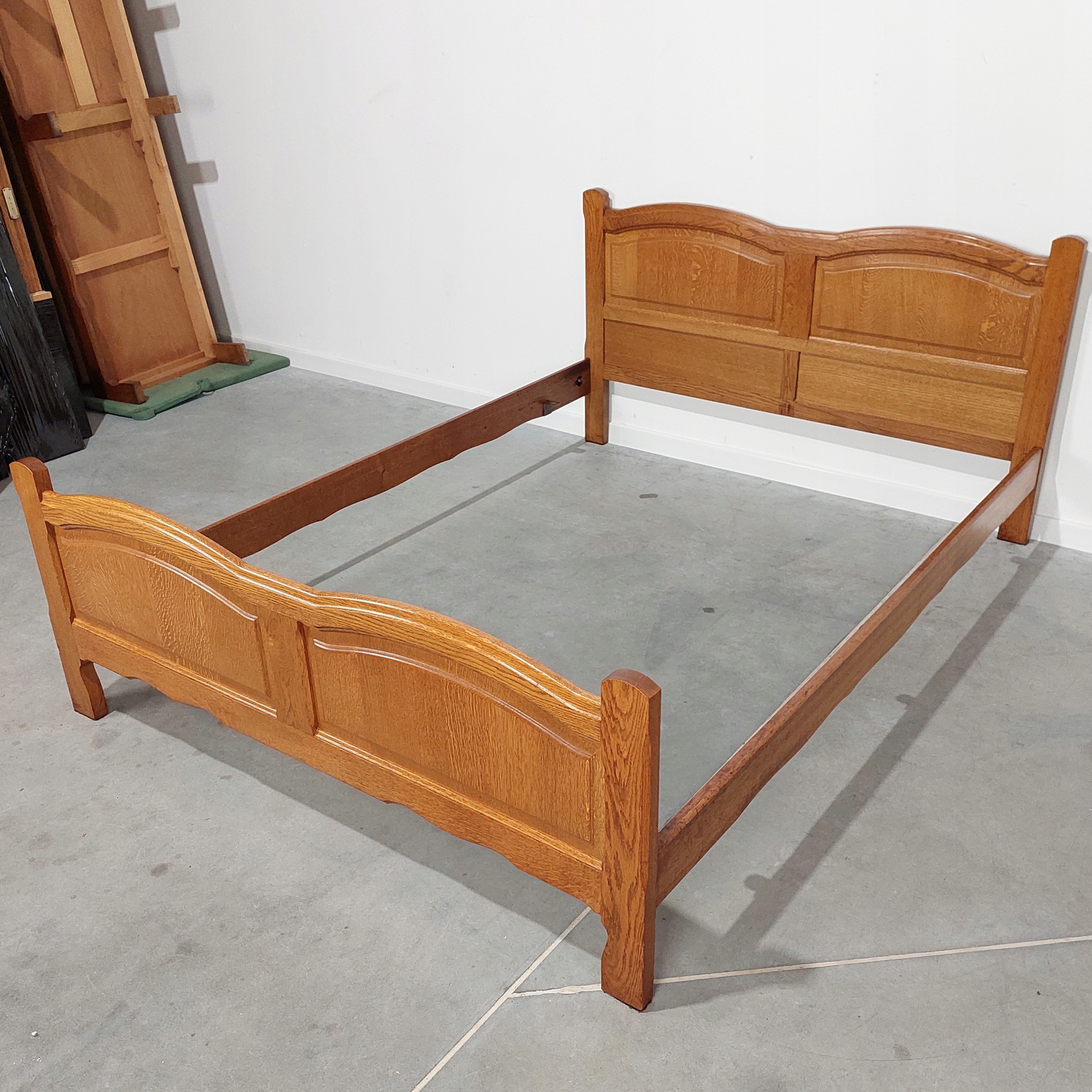 Стильная кровать из голландского дуба, импортированная из Нидерландов. Мебель изготовлена полностью из массива дуба. Имеются следы использования в виде царапин (в основном на боковых планках) и следов ремонта (последнее фото).