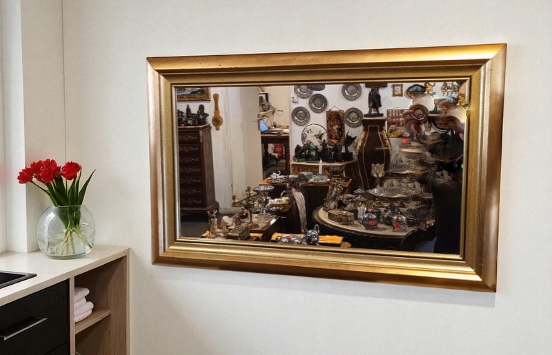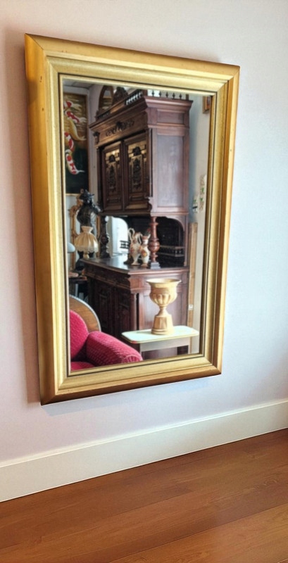 Красивое и впечатляющее зеркало в чудесной золотой деревянной раме. Они радуют своей изысканностью и оригинальностью. Зеркало можно повесить вертикально и горизонтально. Состояние хорошее.