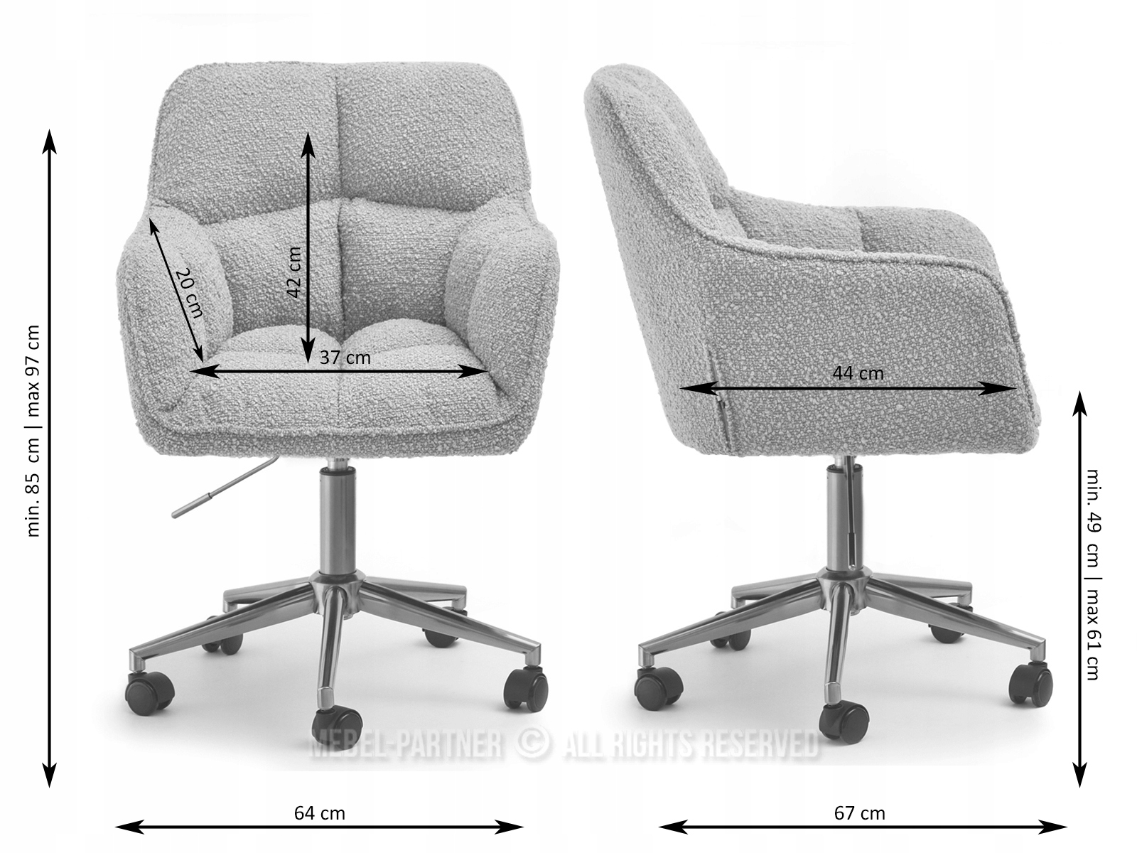 СТИЛЬНЕ КРІСЛО ДЛЯ ПІЛЬНОГО СТІЛЬЦЯ ДРИЛ ISLA LAMB BOUCLE GREY GOLD BASE
