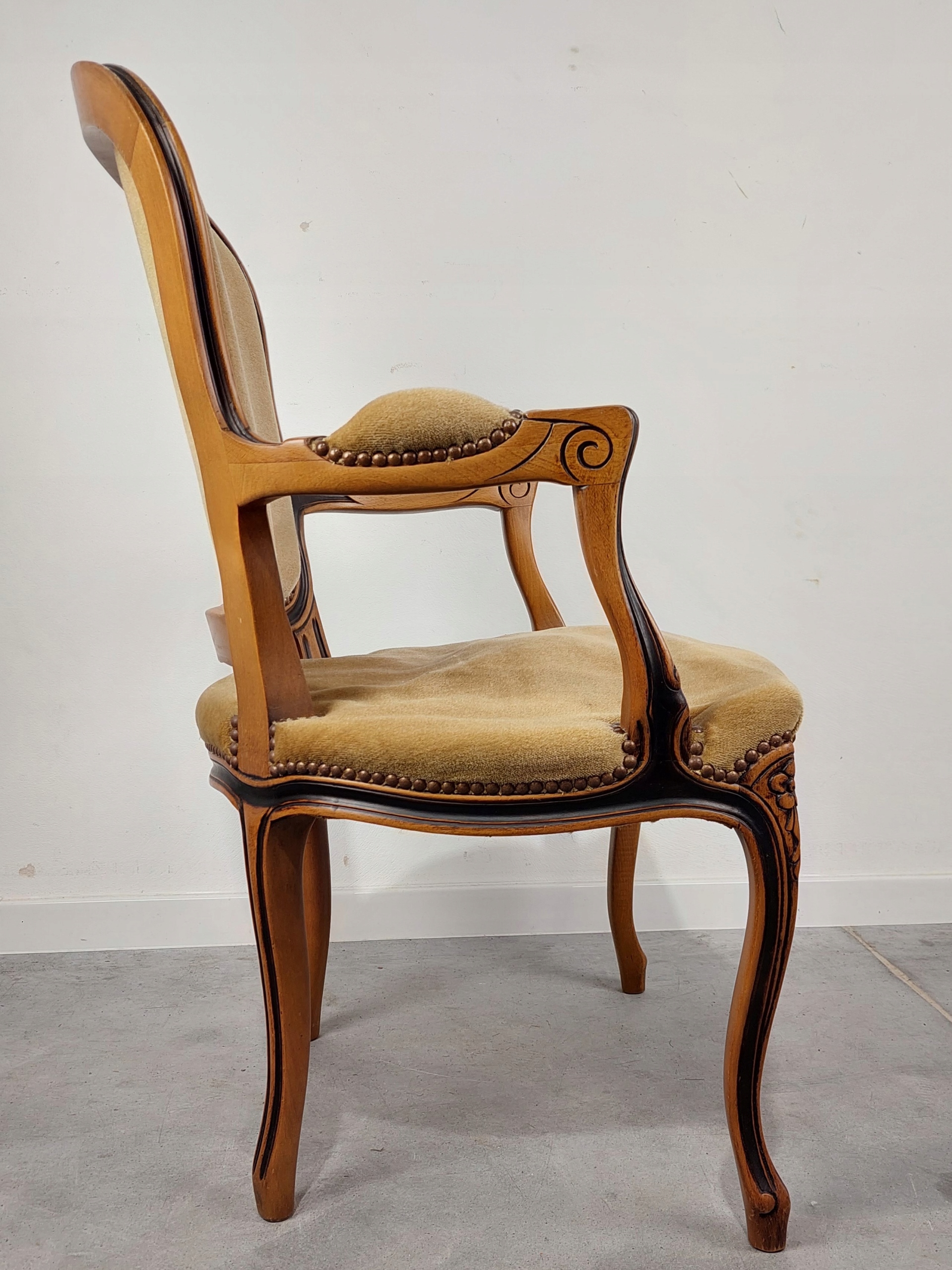 Стильное дубовое кресло Людвик, обитое плотным бархатом медового цвета, на гнутых ножках. Редкая, уникальная модель. Мебель имеет следы использования, единственный дефект, требующий ремонта, - состояние сиденья, конструктивно безупречное.