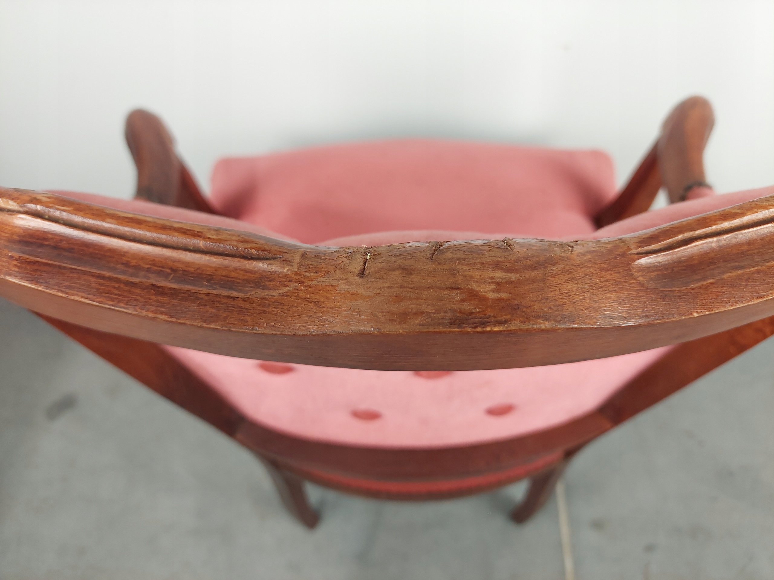 Стильное дубовое кресло Людвик, обито теплого розового цвета, на гнутых ножках. Мебель имеет следы использования, обивка в хорошем состоянии (материал не имеет дыр и потертостей, но требует обновления), первоначальная конструкция полностью устойчива. Подробности на фотографиях ниже (ножки при транспортировке не откручиваются, мебель доставляется заказчику целиком). .