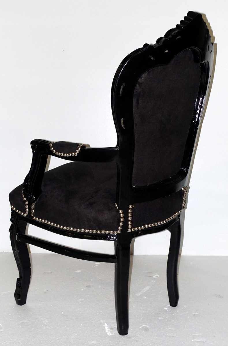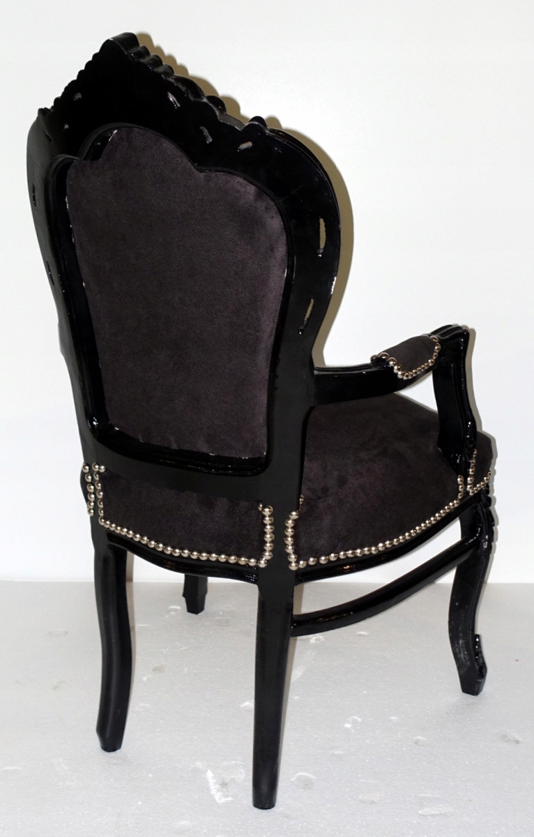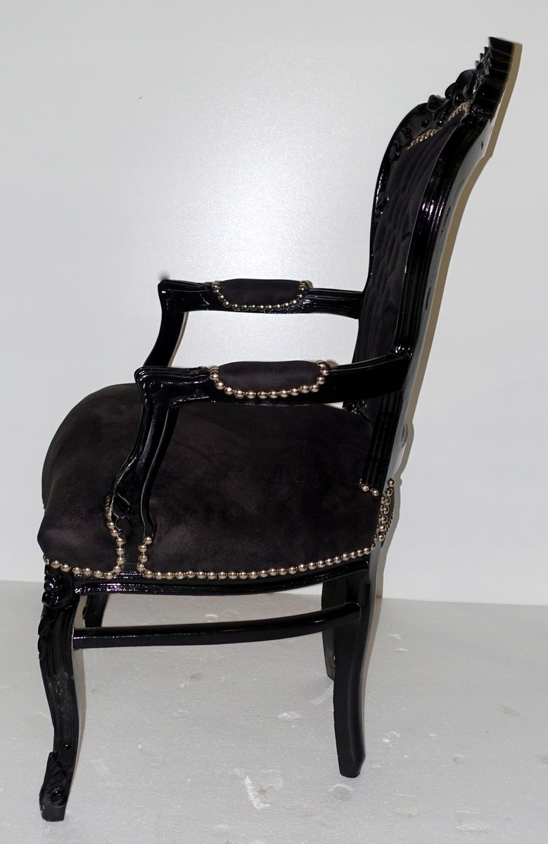 Стильный барочный стул с подлокотниками. Новая мебель, неиспользованная в настоящее время, так что она выглядит историческим. Черный лес. Обивка в тени, а также черный, плюшевый материал - со вкусом стеганая стега и отделана декоративной серебряной военной сосной. cm f-640