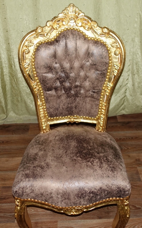 Стильный табурет в стиле барокко. Новая, не бывшая в употреблении мебель, выполненная в современном стиле под старину под старину. Дерево состаренного золота, обивка из нубука кофейного цвета с нежным меланжем; со вкусом простегана на спинке.