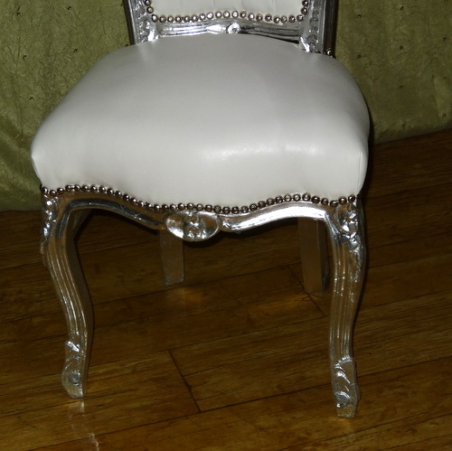 Стильне крісло в стилі бароко, сріблясто-білий ретро-табурет