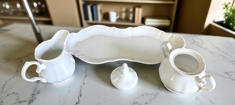 я оцениваю фарфоровое состояние очень хорошим; Нет повреждения. Набор впечатляет сложной формой. Отличным набором будет, например, супер случайный подарок, практичный и декоративный элемент стильного интерьера, а маленький черный получит уникальный вкус. h1> Я очень рекомендую h1>