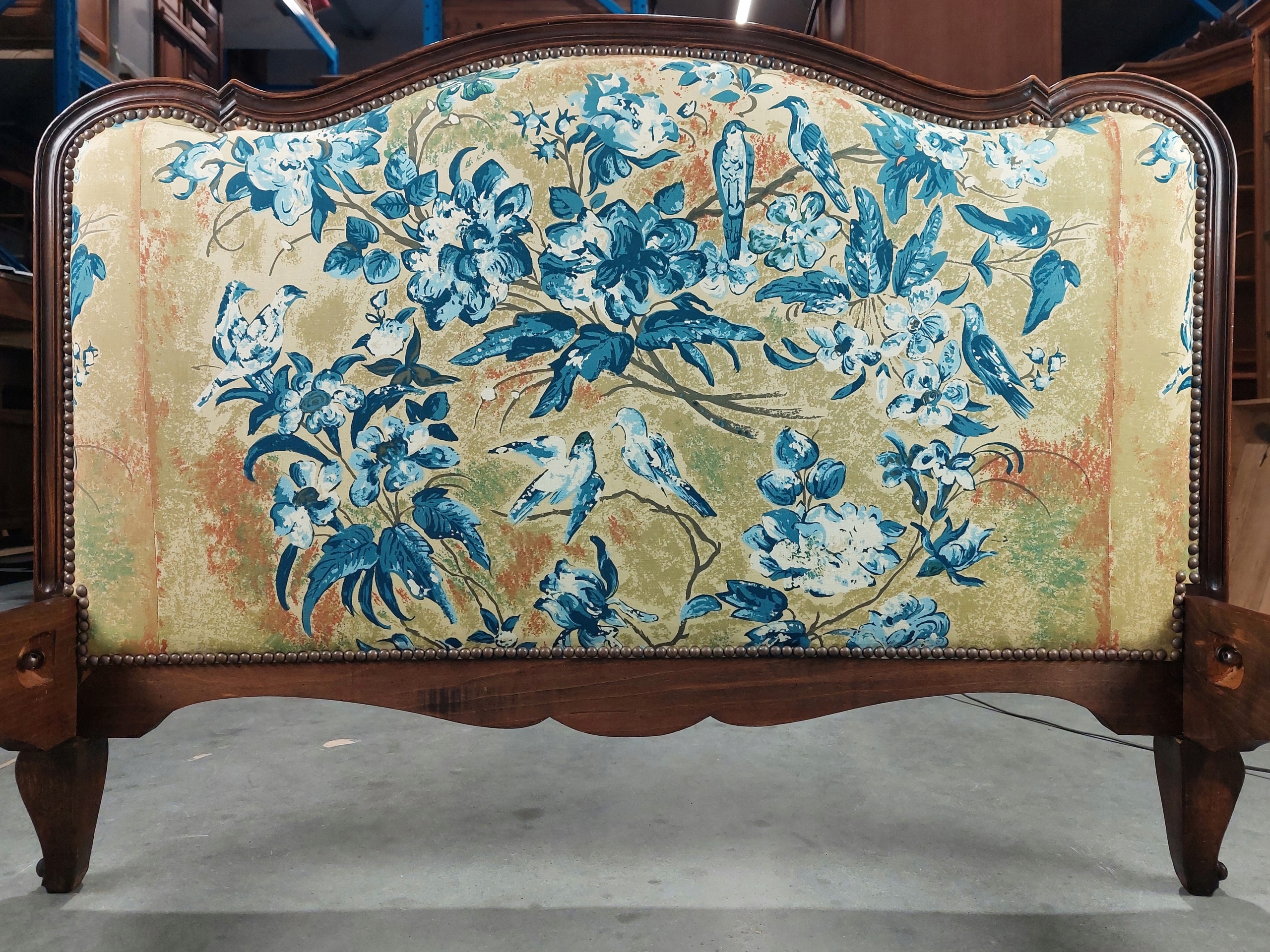 Стильная кровать из дуба Людвик с мягкой обивкой, импортированная из Франции. Уникальная модель. Мебель из дуба. Имеются следы использования в виде потертостей и царапин. Обивка чистая, без дыр и потертостей. Детали описаны и показаны на фотографиях.