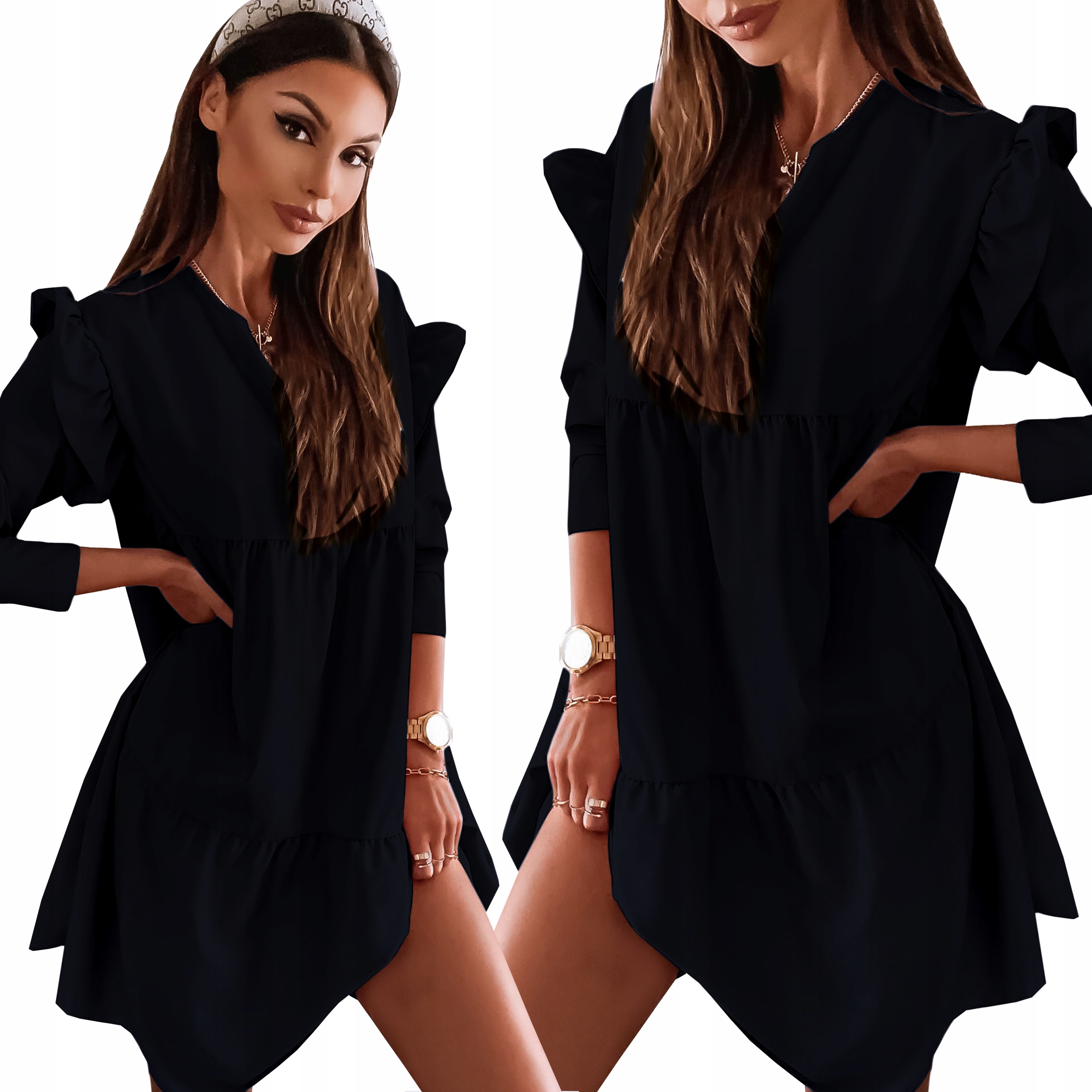 Негабаритные платья являются определенным хитом. Чрезвычайно декоративные рукава в форме обочины дадут вам очарование. У этого есть тонкий круглый вырез. Оптимальная длина платья будет подчеркнуть ноги. Сделанный из хорошего и воздушного материала, он обеспечит вам комфорт. Деликатные графики на платье дадут дополнительный персонаж. Получите свой идеальный цвет и создайте стилизацию с нашей моделью.