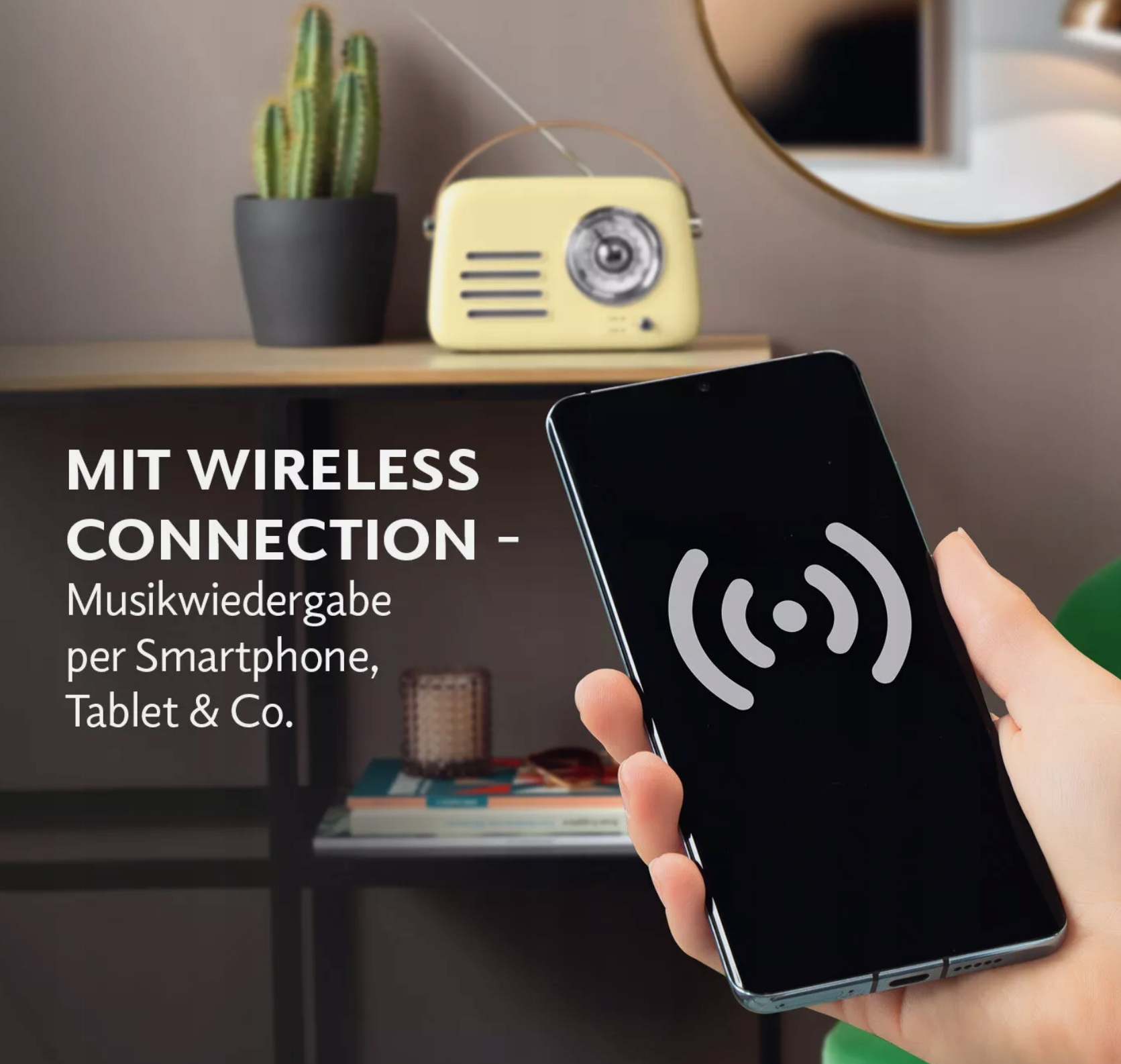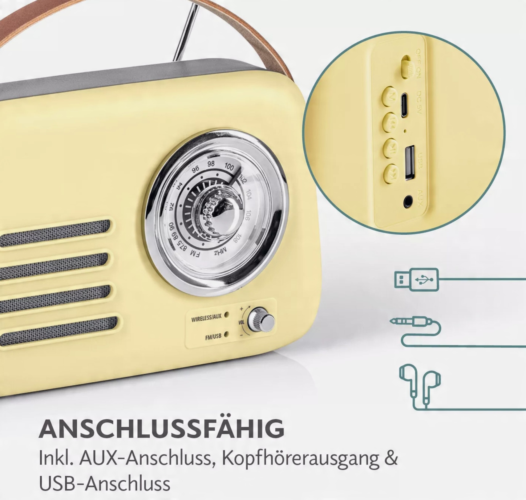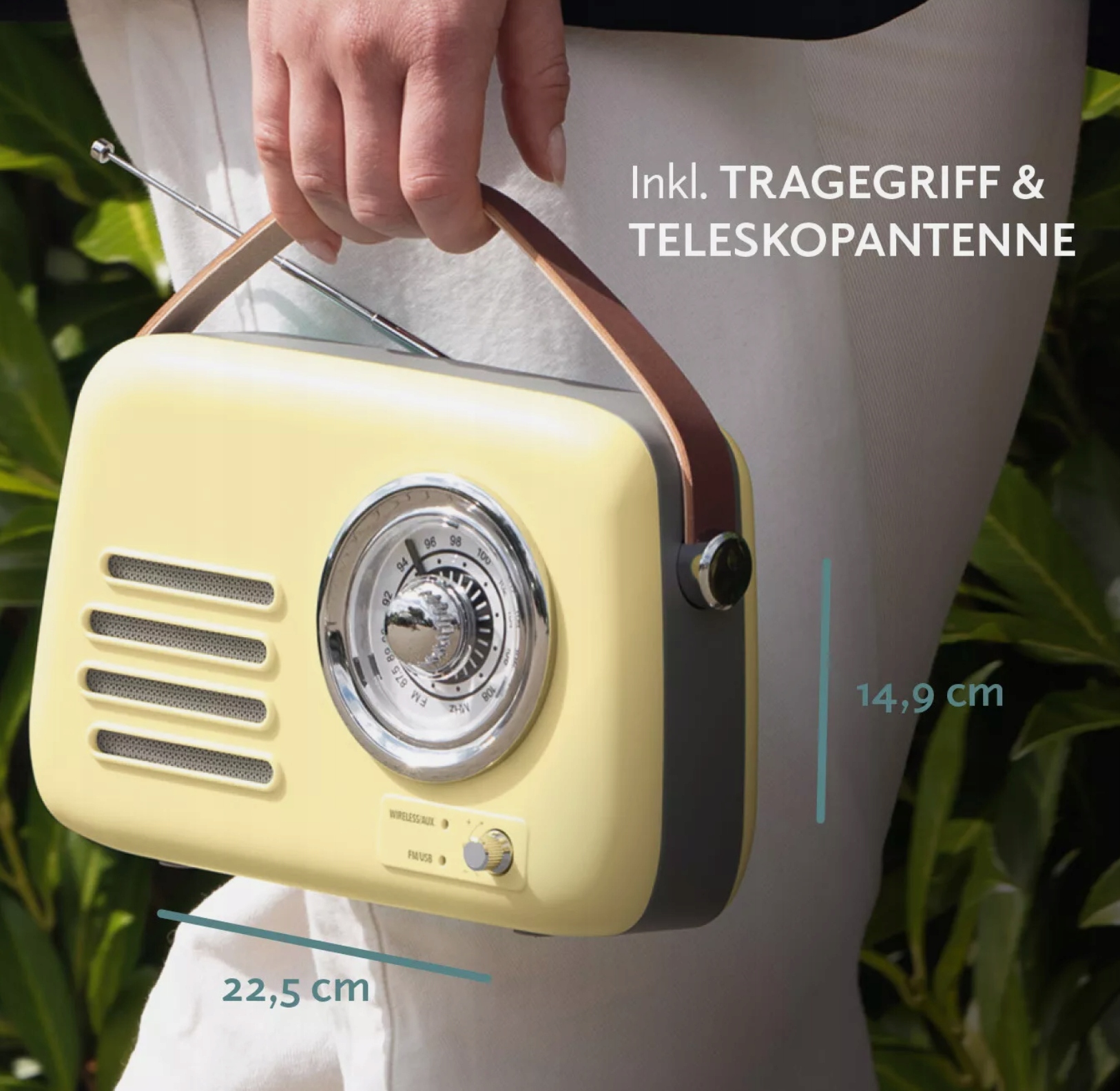 Теперь вы можете слушать музыку и в то же время восхищаться стильным дизайном ретро! Благодаря беспроводной комбинации вы можете наслаждаться музыкой со смартфона, планшета или ноутбука по беспроводной связи, используя это радио - даже когда вы находитесь в движении! Передача easymaxx будет создавать каждую качание Haleczka и идеально подходит для пикников в парке - до 5 часов непрерывной прослушивания музыки! Содержит USB -порт и выход для наушников. FM-радио с телескопической антенной и ручкой для регулировки диапазона частоты и громкости.