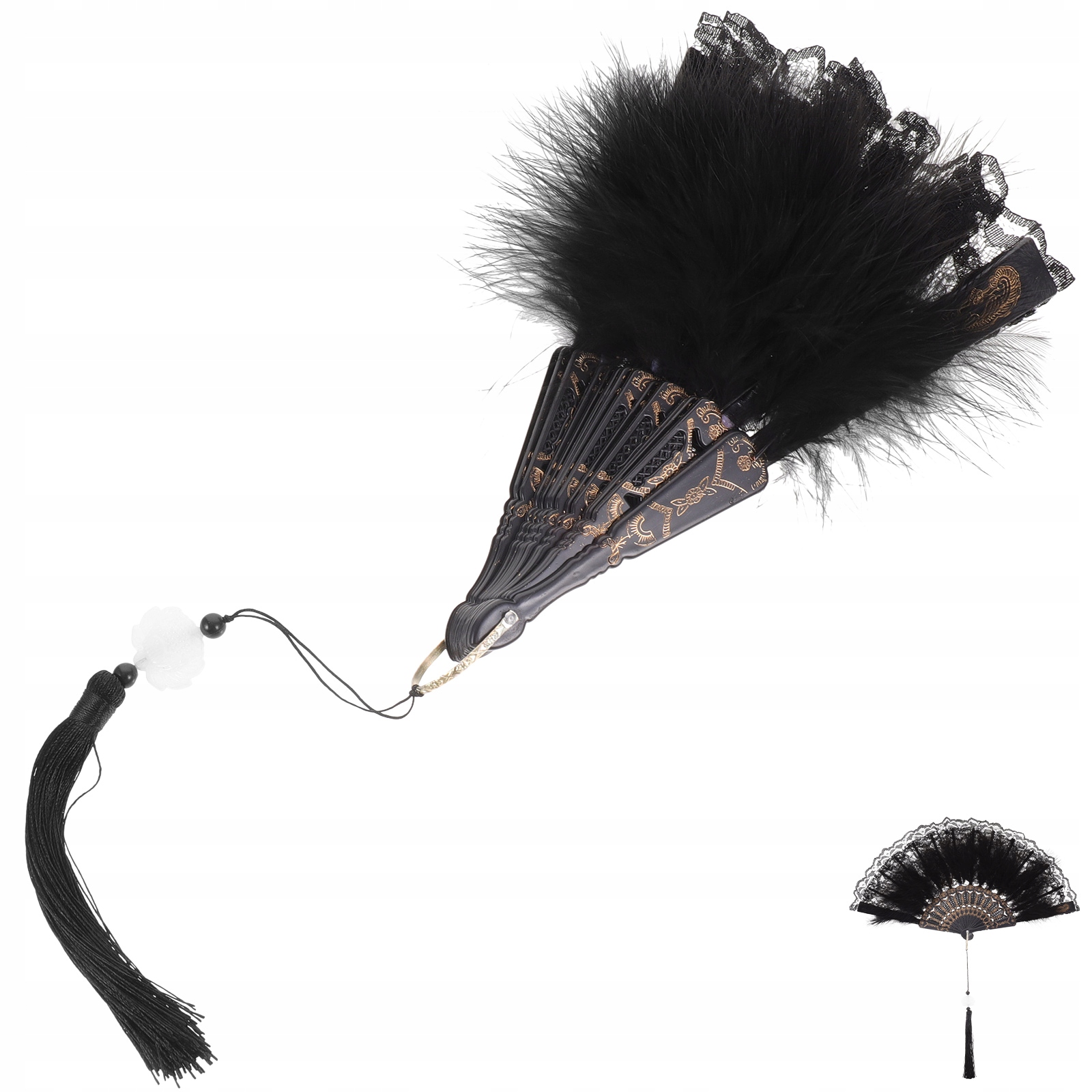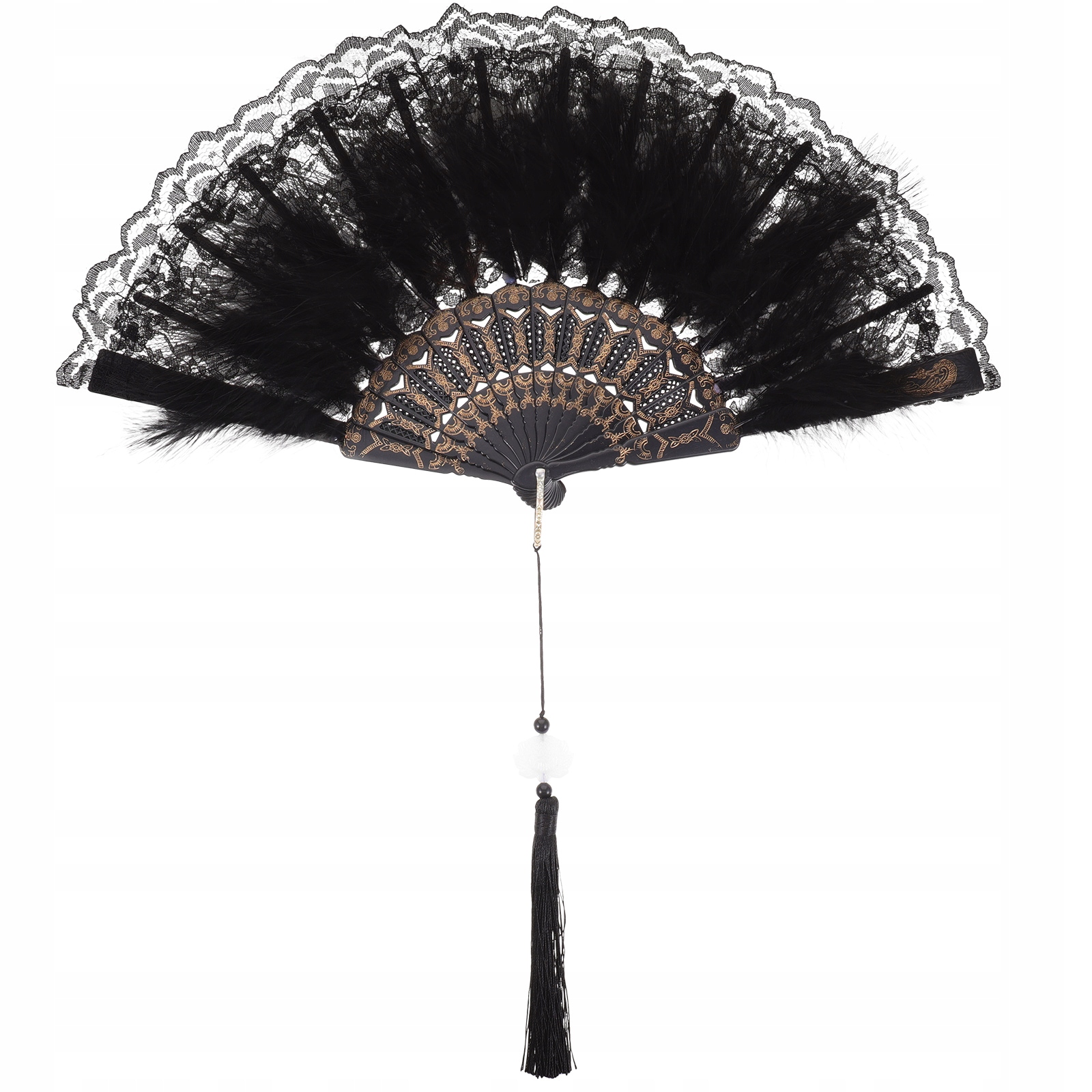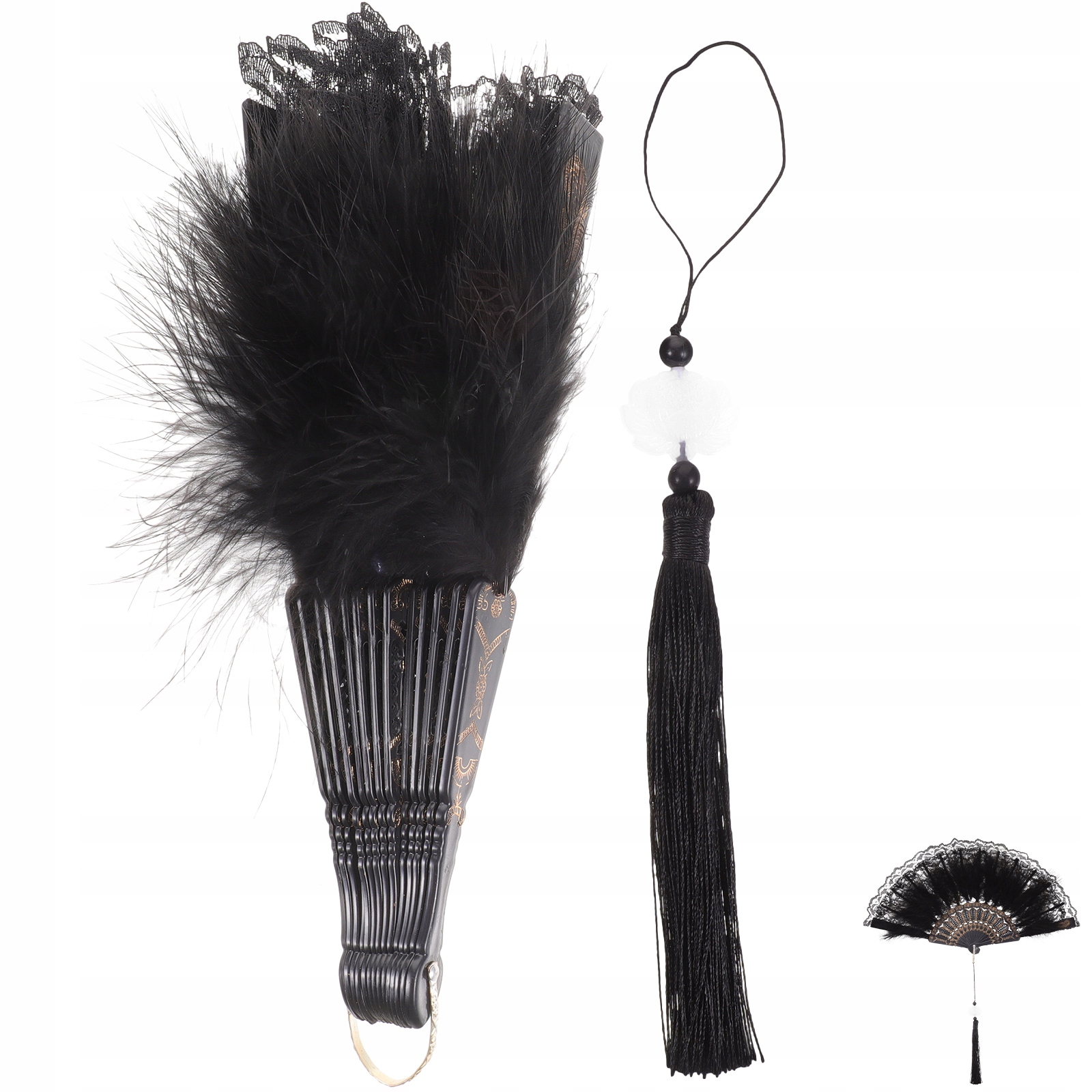 СТИЛЬНЫЙ СКЛАДНОЙ ВЕЕР С ПЕРЬЯМИ, ЧЕРНЫЙ, ДЛЯ ВЫСТУПЛЕНИЙ I