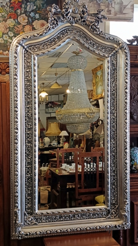 Стильное зеркало; тремо с чудесным навершием в верхней части, новое, выполненное в старинном дворцовом стиле. Рама зеркала из дерева + декоры; отделочная лепнина цвета старого серебра, фацетированное стекло. Зеркало очень привлекательное и декоративное и непременно станет практичным украшением вашего дома, украсив и увеличив комнату, в которой оно установлено.......... поэтому очень рекомендую!!!