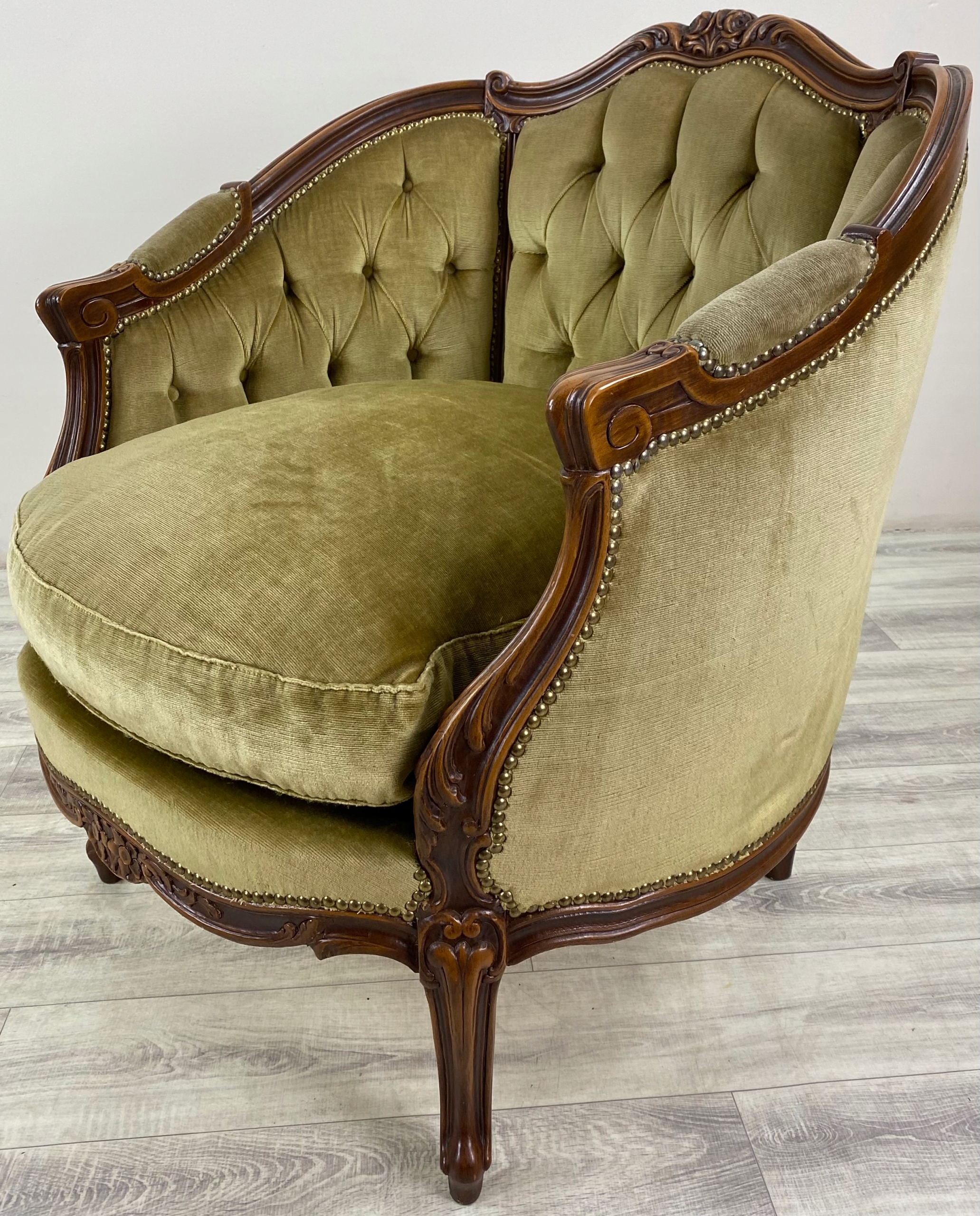 кресло обитано материалом обивки.