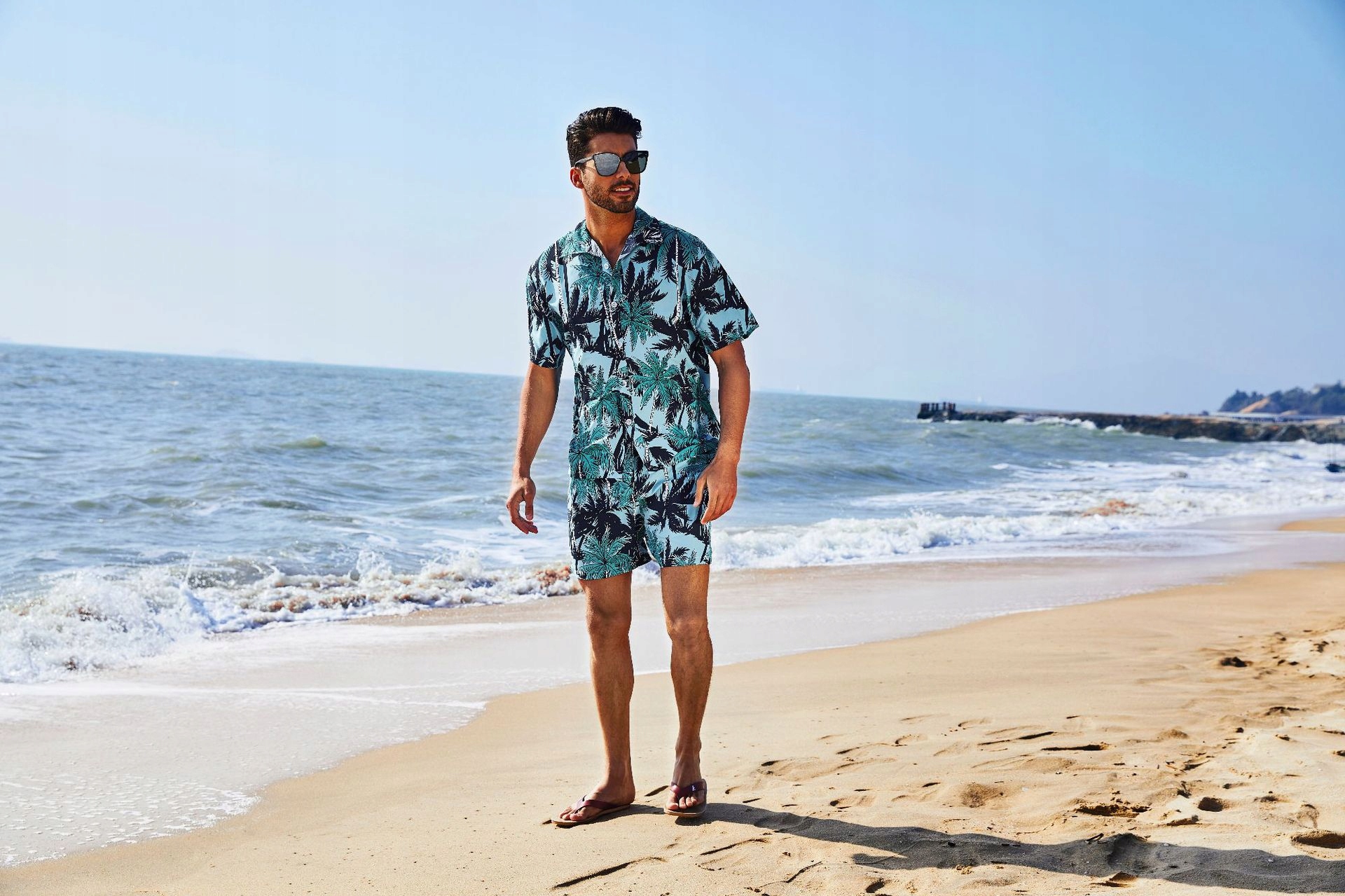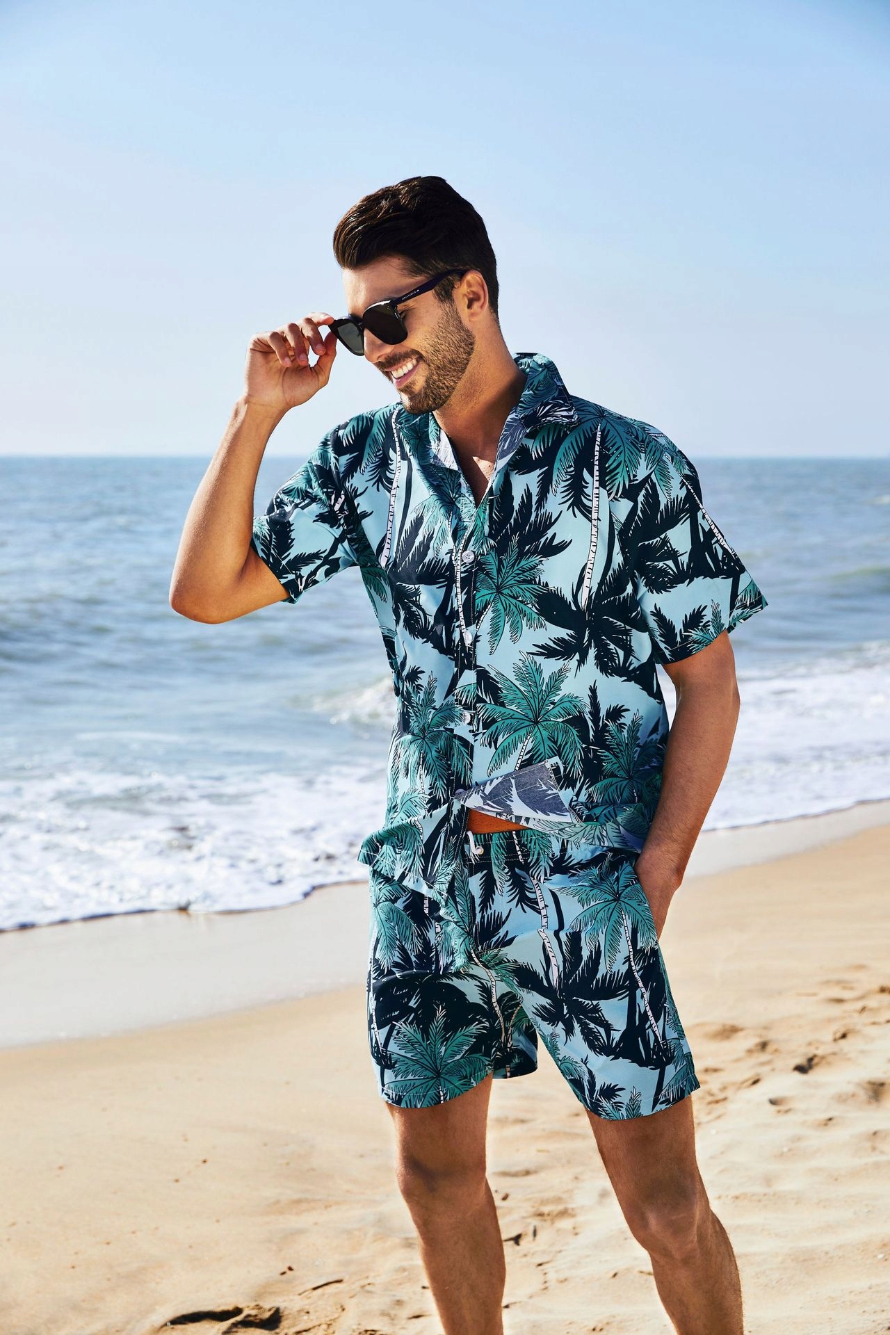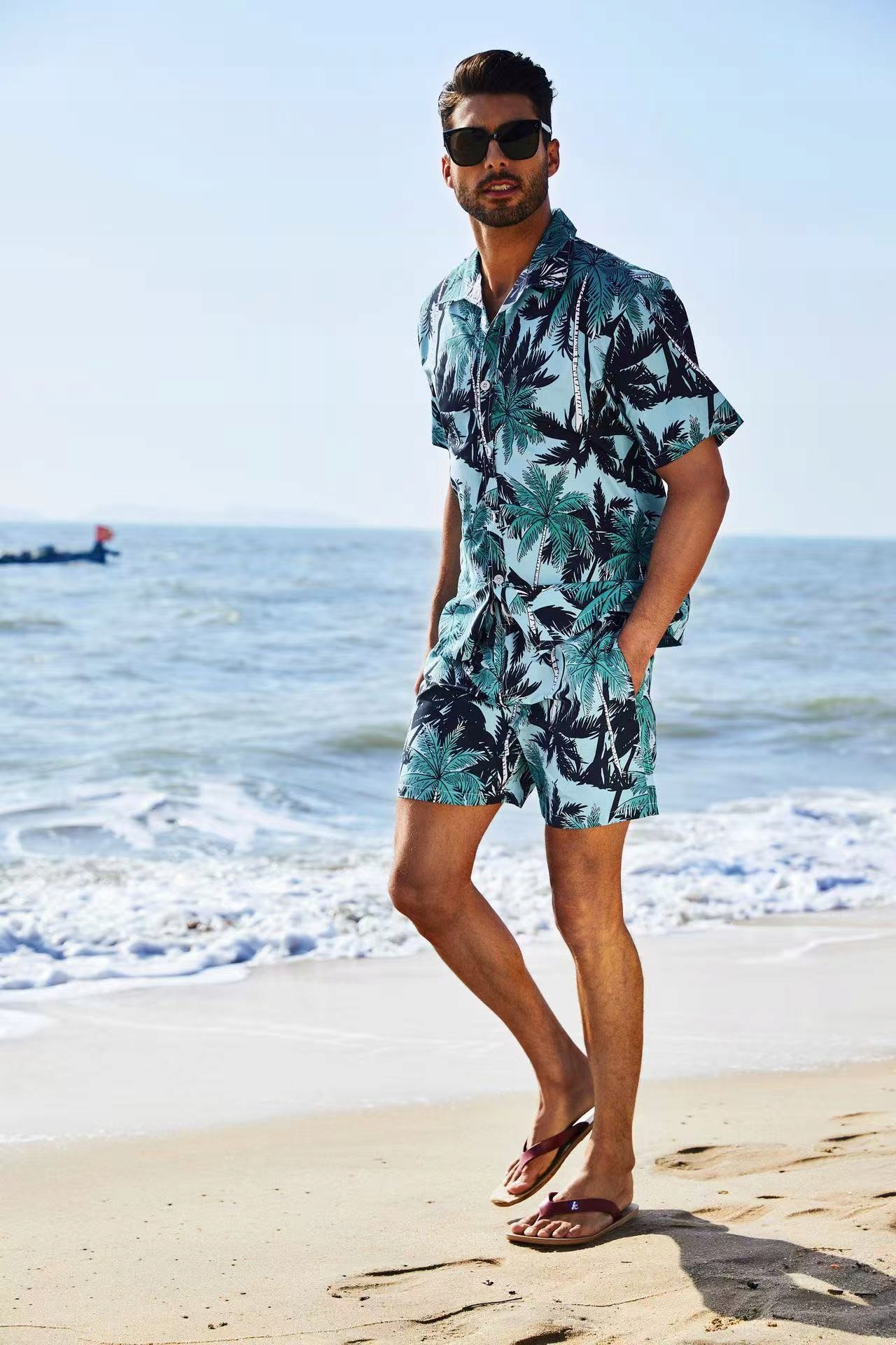 Стильная мужская гавайская рубашка и пляжные шорты летние каникулы