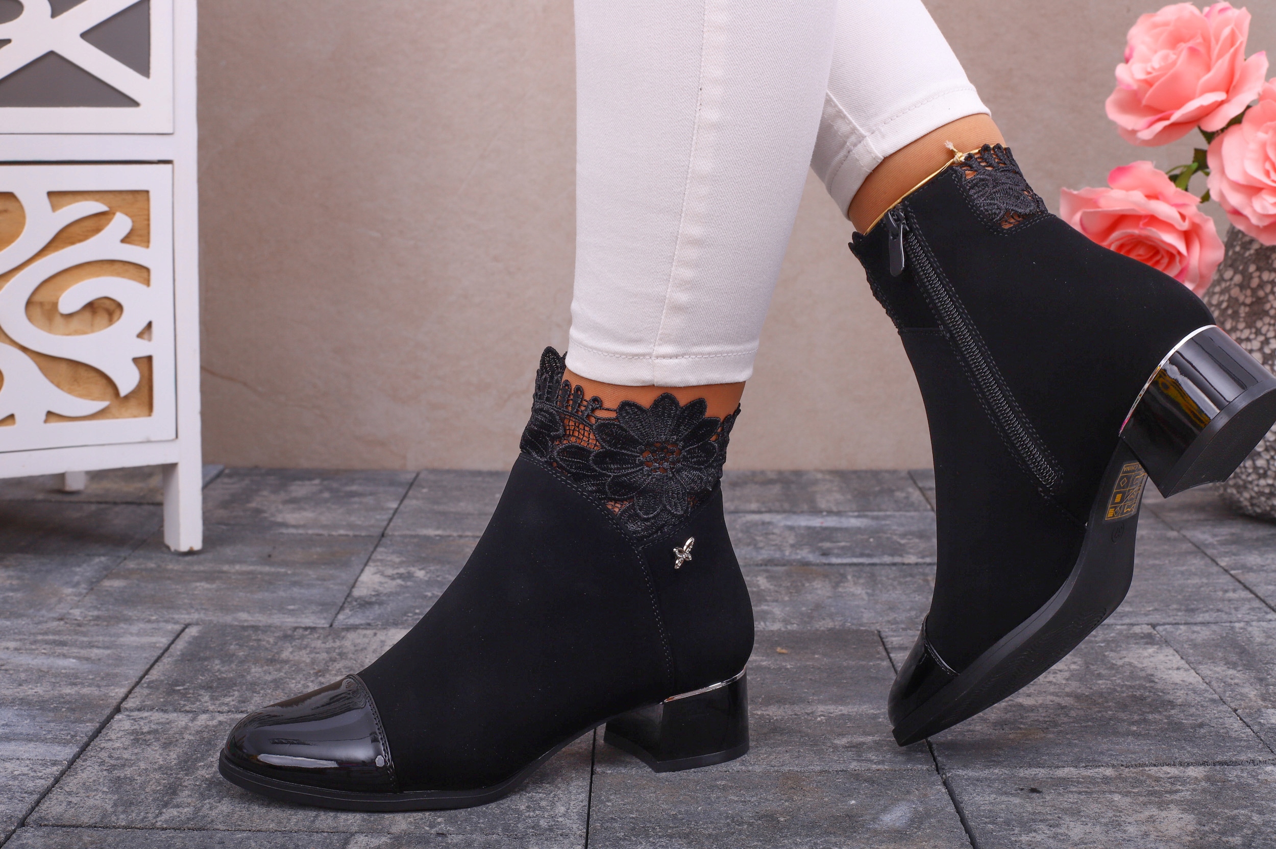 damskie, wsuwane botki na obcasie w Kolorze czarnym. Внутри изолированного с мягким мехом, который удобно использовать, идеально подходит для зимнего IRM, который имеет застежки -Zip, который позволяет легко надевать. ❄ Стабильная, толстая подошва впитывает ногу хорошо и защищает от холода. ❄ Сделано из материалов хорошего качества. Простой вырез заставляет их соответствовать многим стилям.