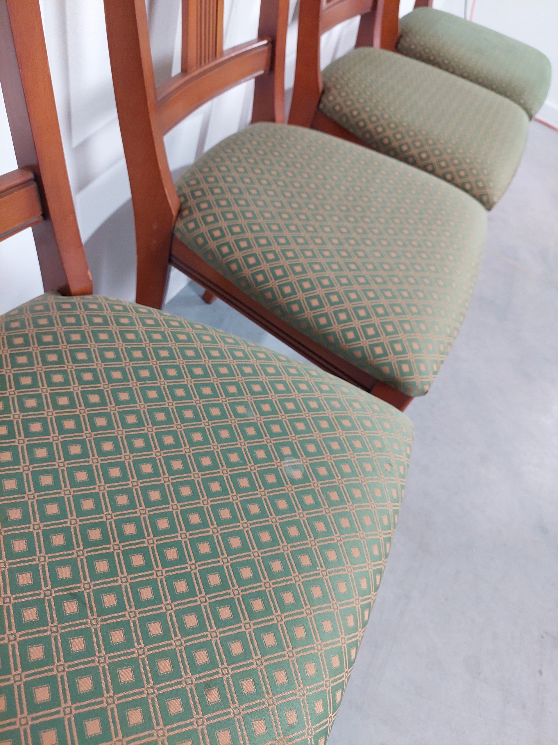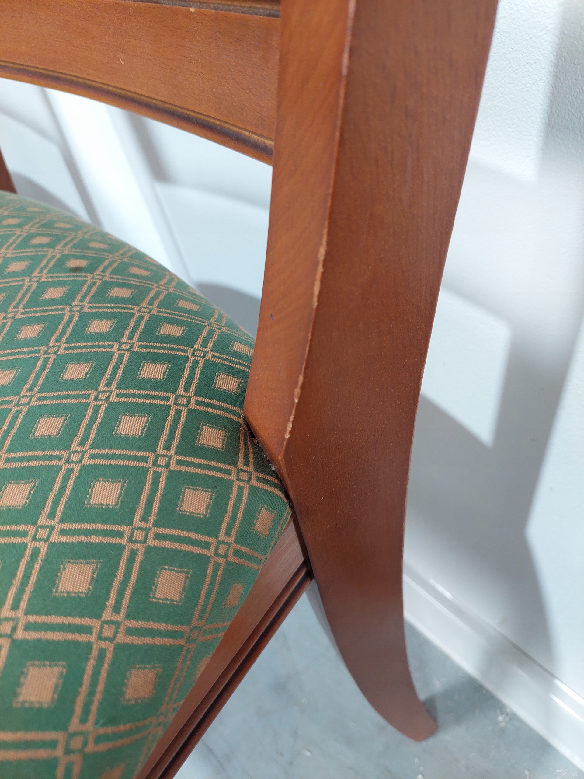 Стильные дубовые стулья в деревенском стиле. Мягкие, удобные кресла с контурной спинкой. Обивка требует небольшого обновления, без дыр и потертостей. На деревянных элементах имеются единичные следы эксплуатации, потертости и царапины. Конструкция мебели устойчива, жестка, не требует склеивания и подобных работ. Подробности описаны и показаны на фотографиях. Цена указана за комплект: 4 стула.
