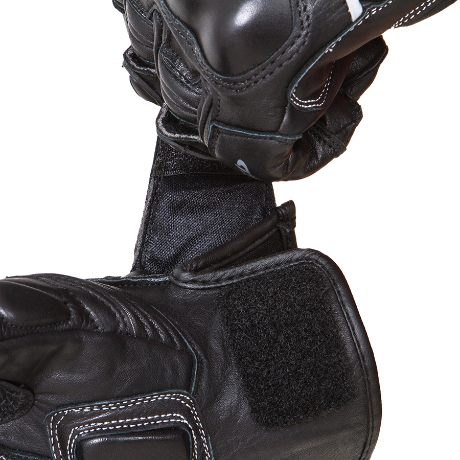 Защита рук в случае падения гарантируется жесткой внешней защитой куба, структура которой также защищает кости метакарпала. Дополнительные защитники на пальцах, укрепление в форме двойного слоя кожи и защитников повышают общий уровень безопасности, не снижая комфорт использования перчаток и без ограничения движений каким -либо образом. Дополнительным преимуществом защитников, расположенных у основания руки, является демпфирование вибраций рулевого колеса, образованных во время вождения.